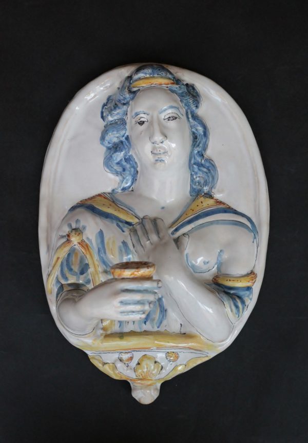 tenant un godet dans la main droite formant bougeoir. A la base, fleuron