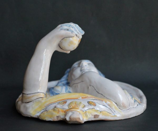 Applique formant bras de lumière en faïence de Nevers à décor en