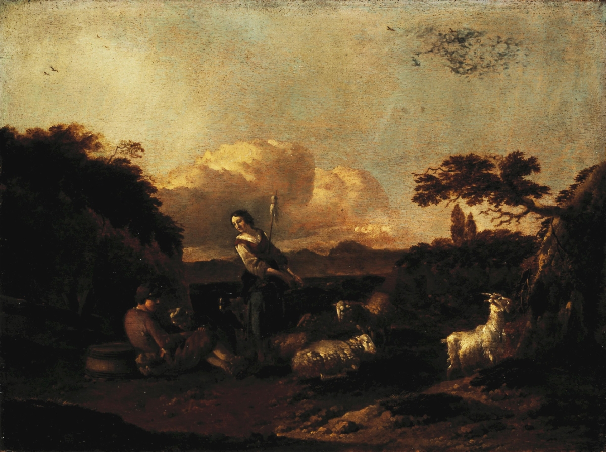Influenced by Flemish and Dutch Baroque artists, notably by Nicolaes Berchem, from whom he borrows the style of idealized pastoral scene, we also find in his paintings the Italian influence of the period.