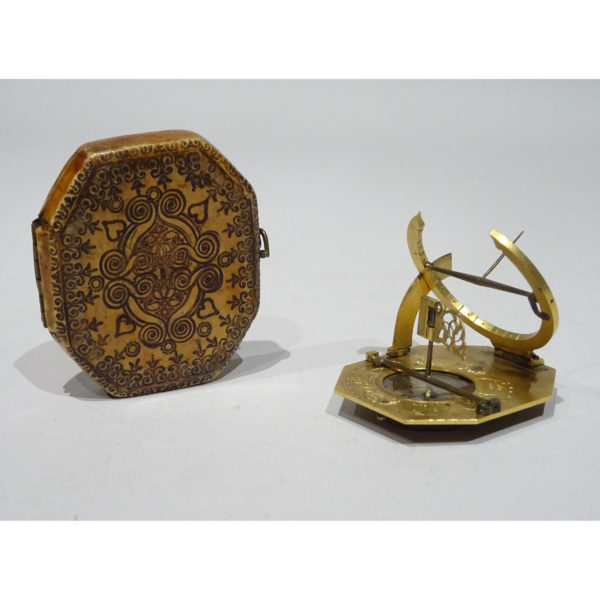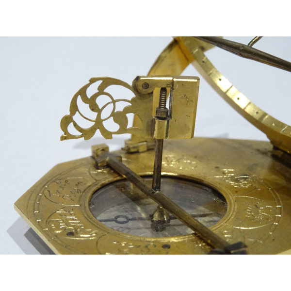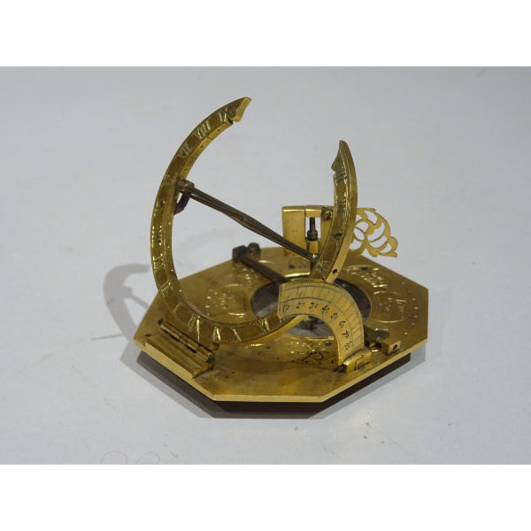 Fabricant : Johann Melchior Hager 1642/1713, actif à Francfort et de la même famille que Wolfgang Hager actif à Wolffenbüttel à la même période dont un exemplaire est décrit et illustré pp 174/175 dans “Cadrans Solaires – Dominique & Eric Delalande – Paris 2013″