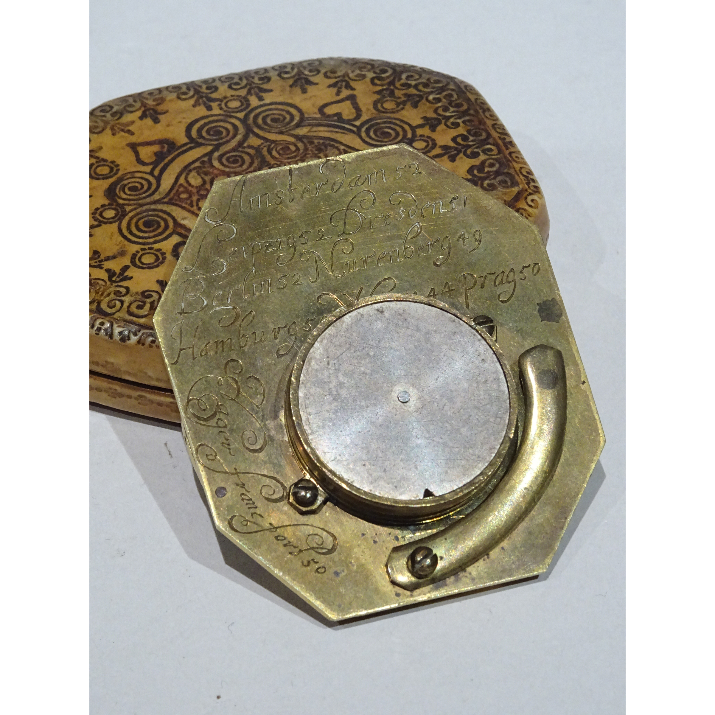 Manufacturer: Johann Melchior Hager 1642/1713, active in Frankfurt and of the same family as Wolfgang Hager active in Wolffenbüttel at the same period, a copy of which is described and illustrated on pp 174/175 in “Cadrans Solaires – Dominique & Eric Delalande – Paris 2013 «