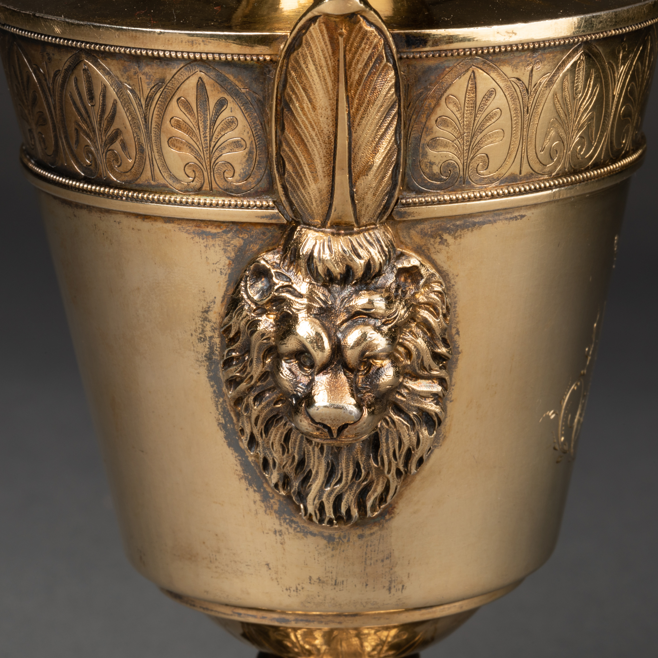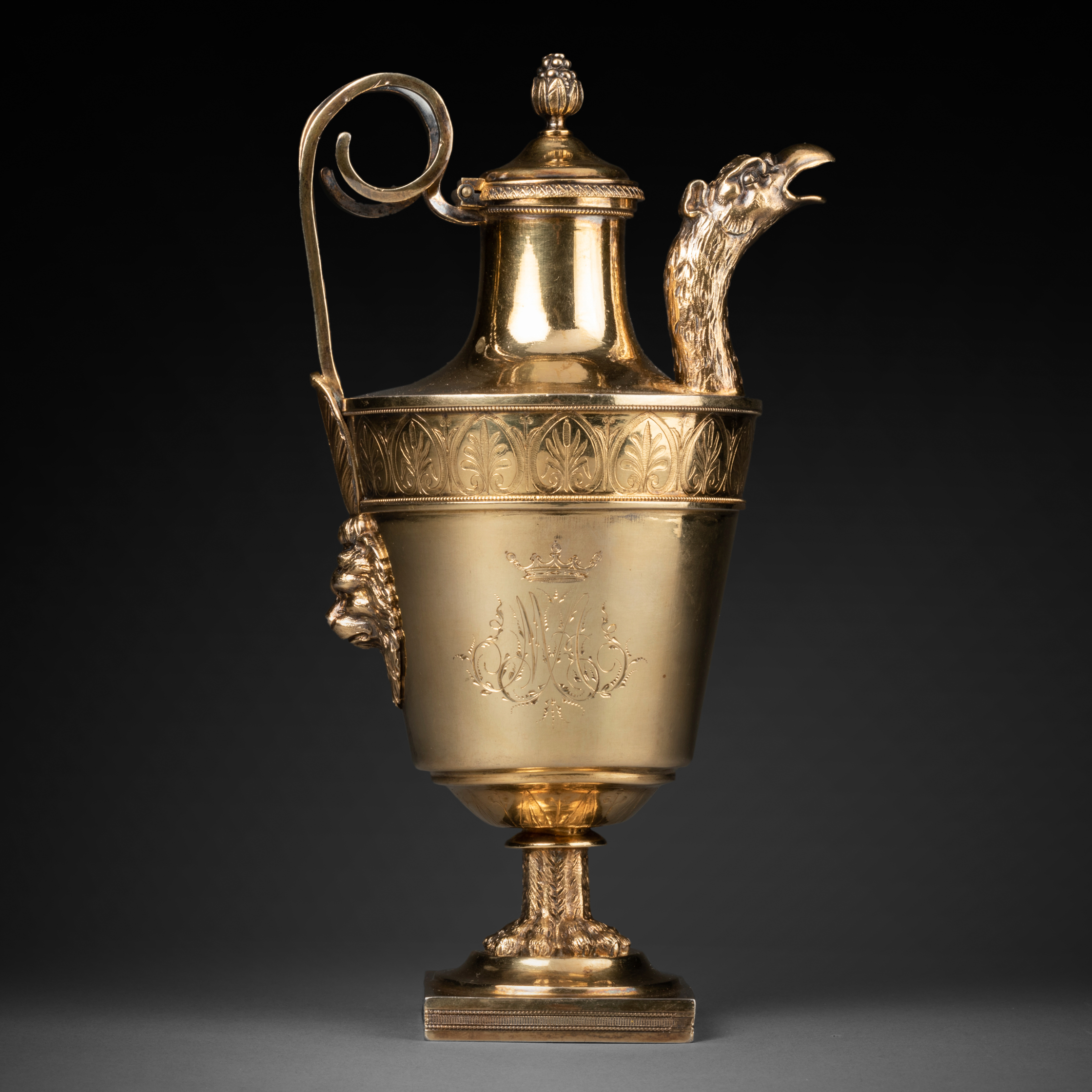Cafetière égoïste en vermeil d’époque Empire. Le chiffre et la couronne gravées sur la panse sont d’origine étrangères.