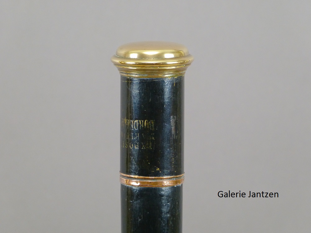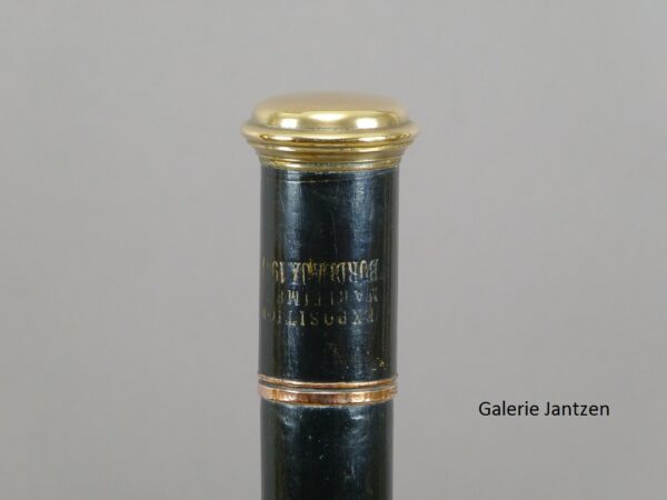 Le 27 avril 1907, Bordeaux accueille la première Exposition Maritime Internationale, pour commémorer le Centenaire de la navigation à vapeur. Cette exposition devait révéler les efforts considérables de chaque pays pour développer leur marine commerciale et leur marine de guerre. Cette canne a système était proposé à la vente ou offerte lors de cette première exposition Maritime Internationale.
