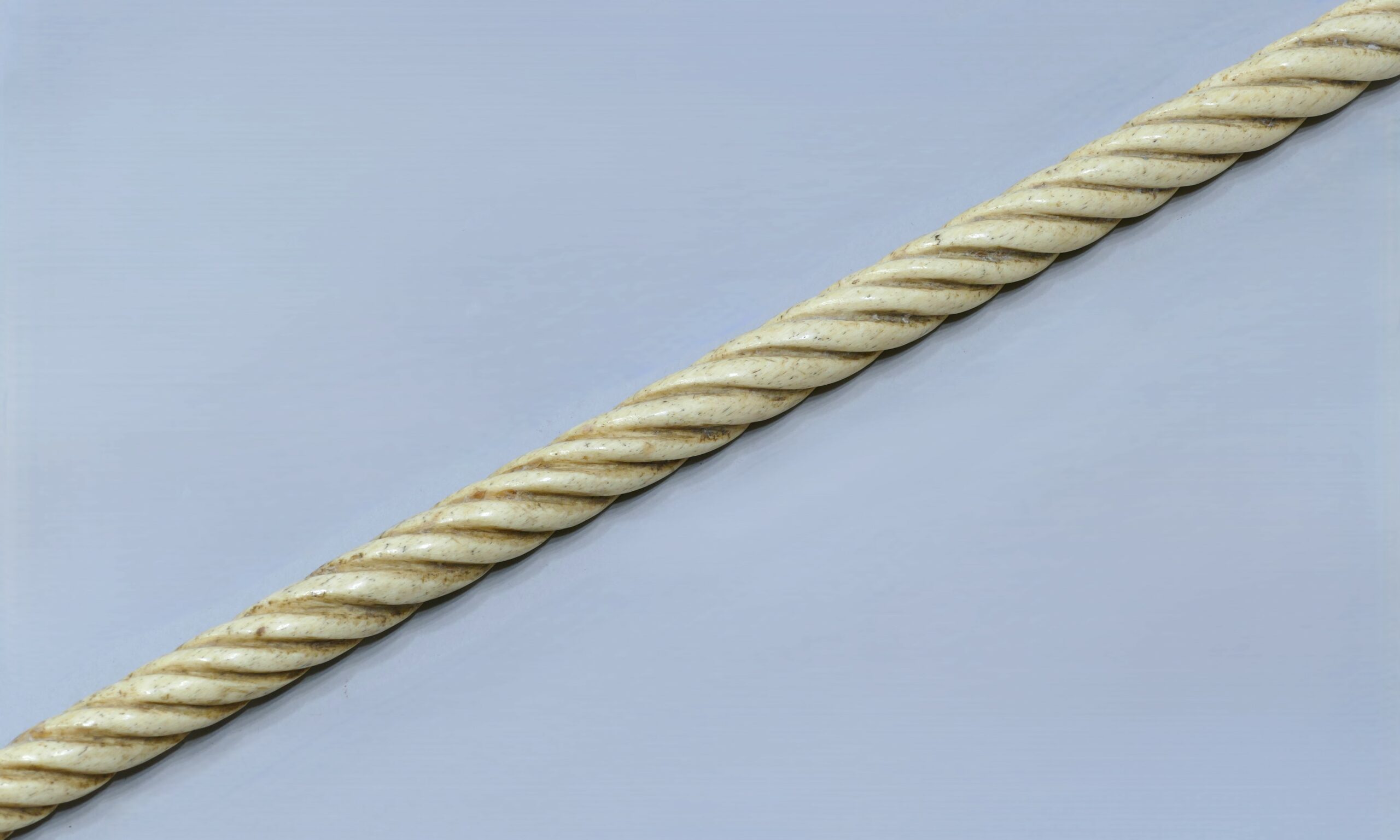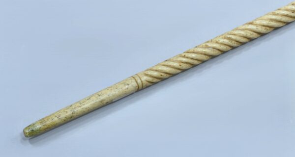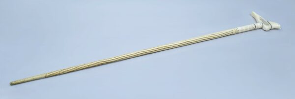 Fût en os de baleine travaillé en partie haute avec cercles en écaille et fanon de baleine, et tourné façon narval sur toute la longueur.