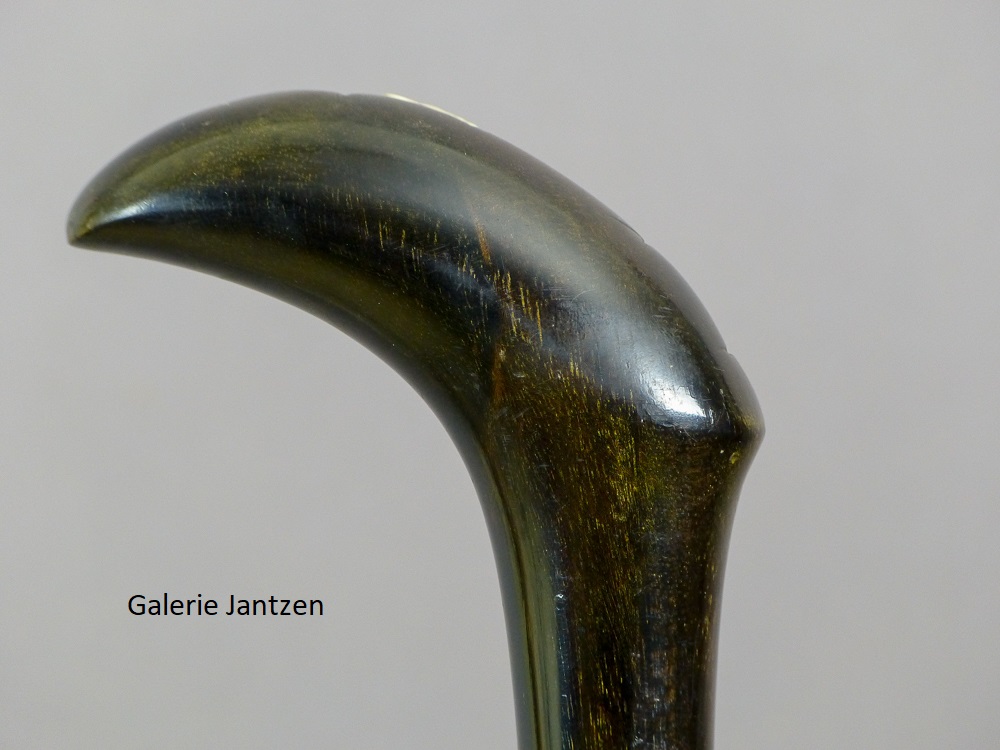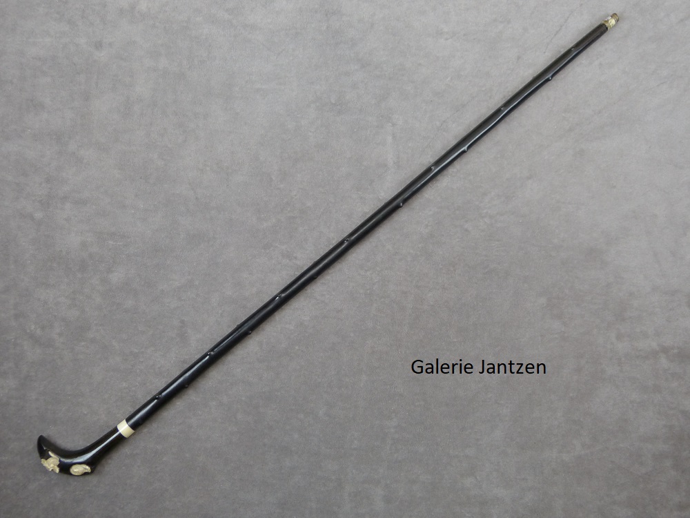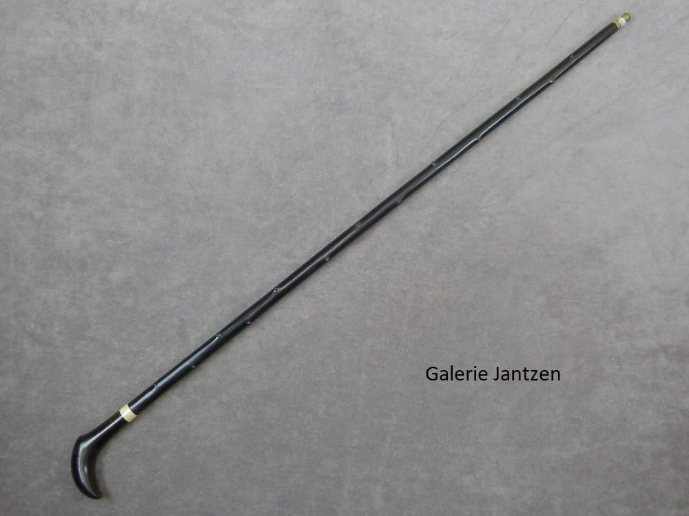 Sur un fût en Ébène du Congo sculpté façon épine, férule en métal.