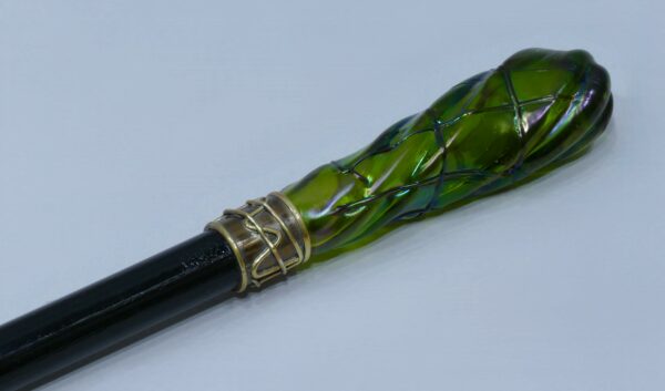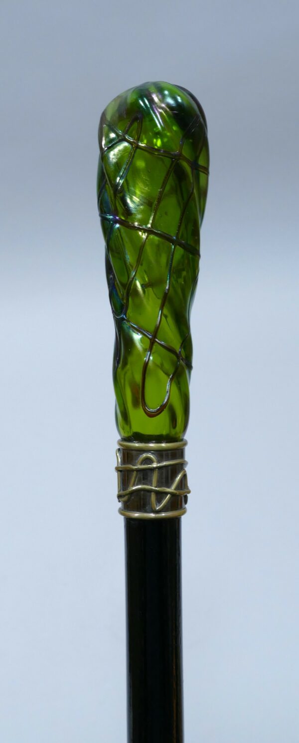 Elégante canne de collection avec long pommeau en verre de couleur verte.