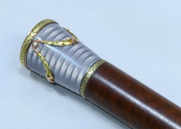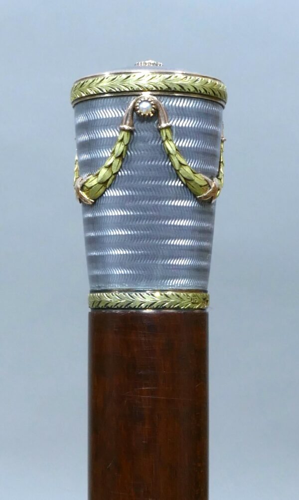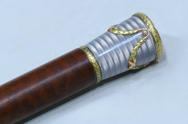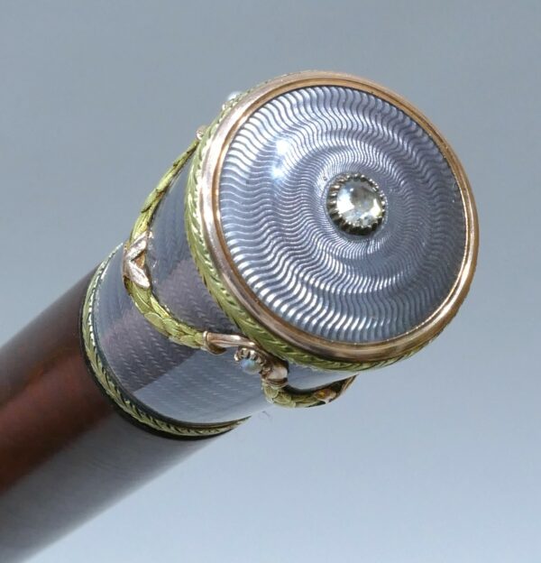 avec pommeau milord en émail guilloché gris clair monté sur ors,