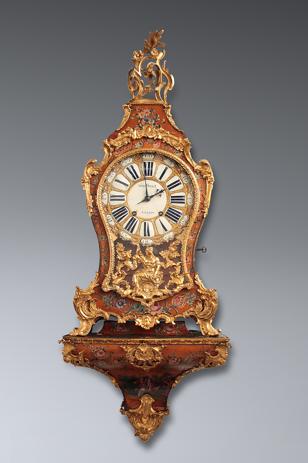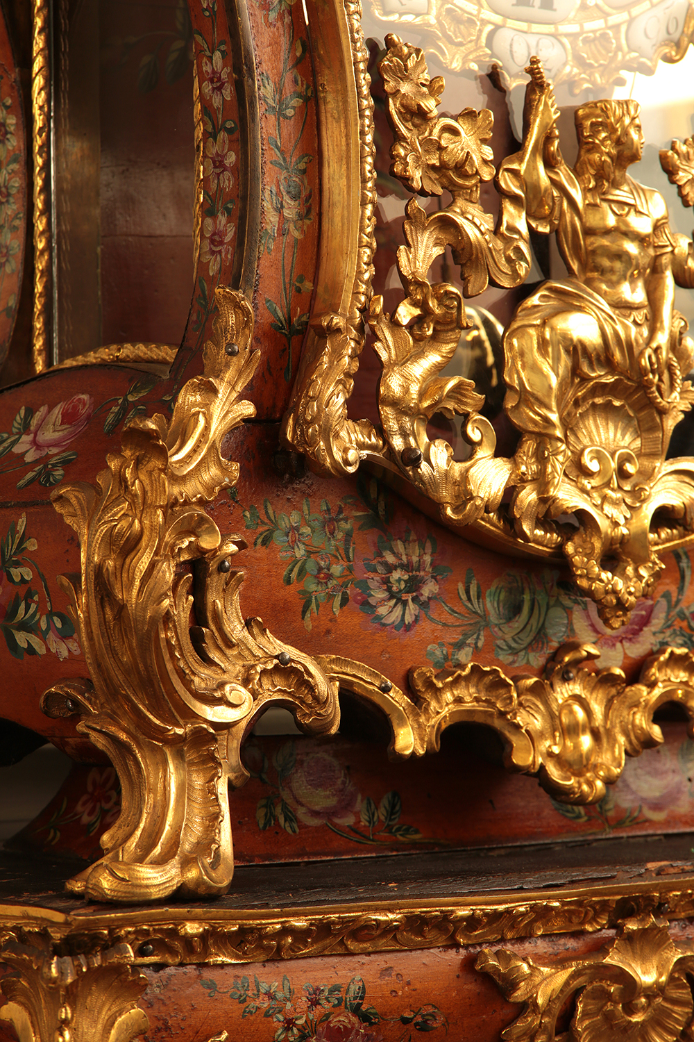 blanc avec des chiffres romains. Belle ornementation de bronzes en volutes feuillagées,