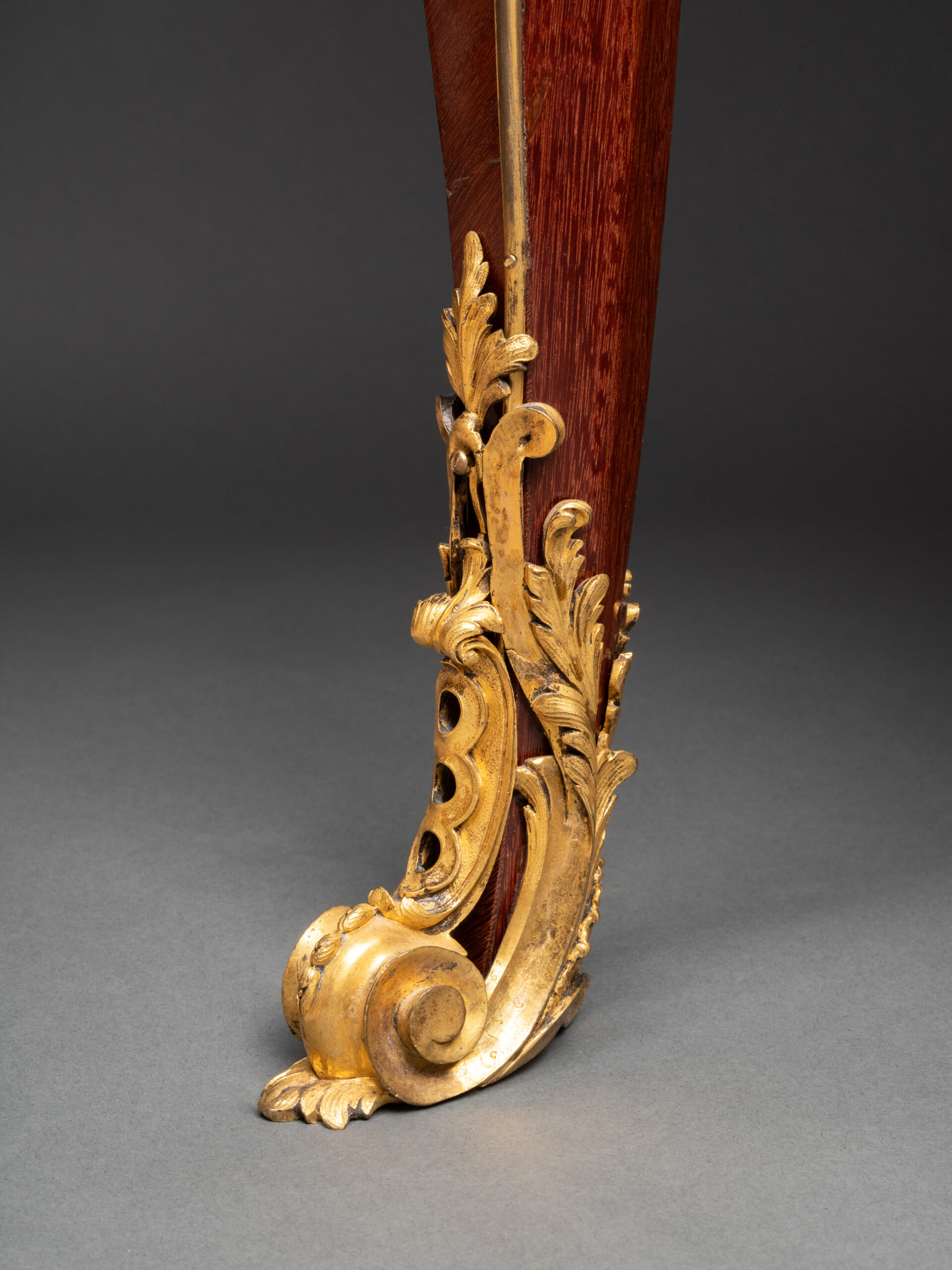 Bronze ciselé et doré souligné de réserves en placage d’amarante, dessus de marbre brèche du Tolonnet