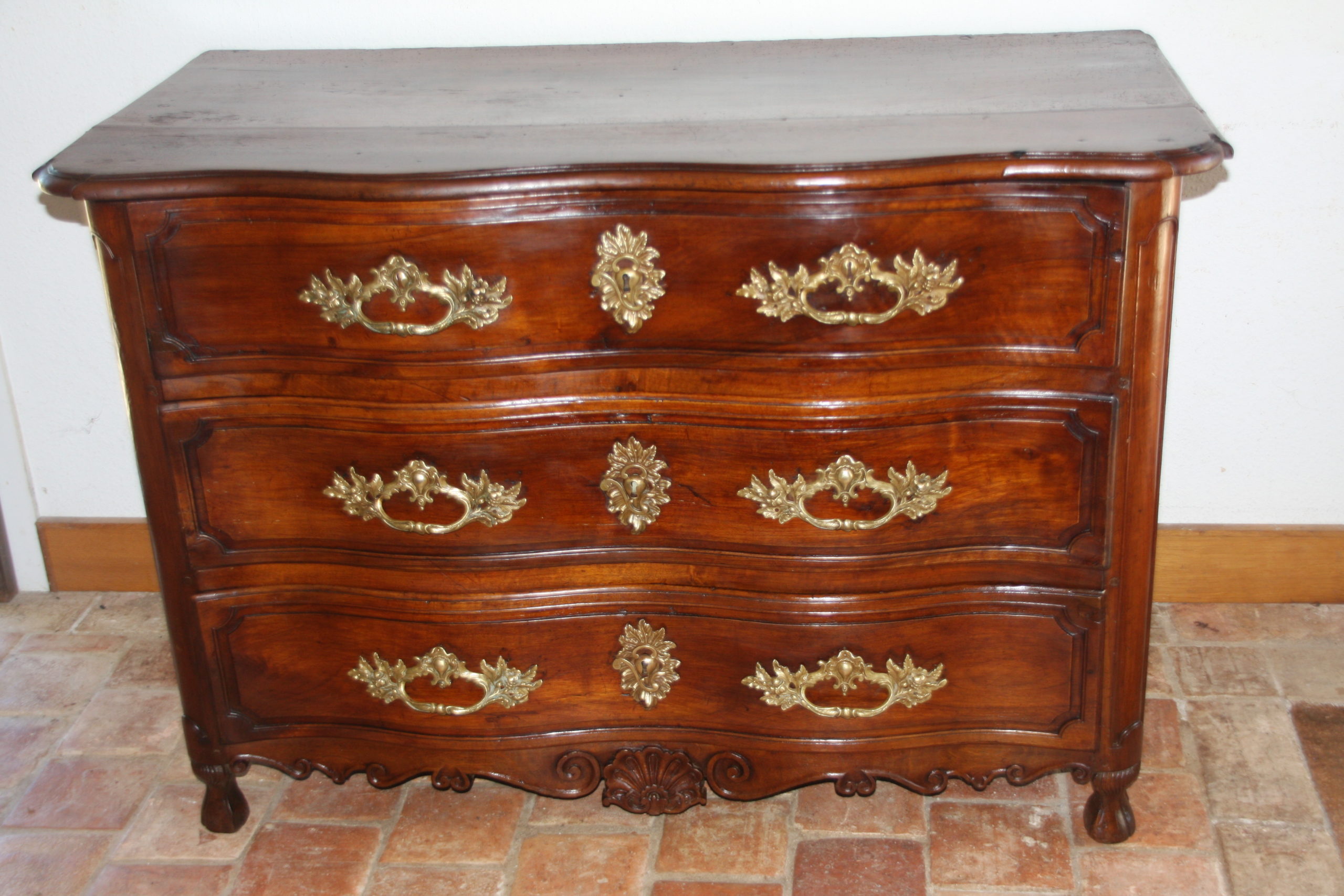 L’apparente simplicité du travail du bois dans les commode, notamment régionale, Louis XV est compensé par une richesse des bronzes. Ils rivalisent en fonction des régions par leur qualité, leur originalité et leur fantaisie.