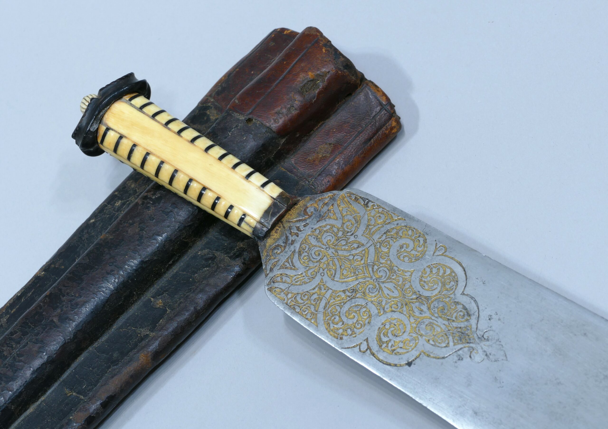 – Le Musée du Louvre possède un couteau présentoir incrusté vers 1627, Allemagne du nord « 1627 » est la date du mariage de Georges II Hess Darmstadt avec Sophie Eléonore de Saxe – Inventaire 161).