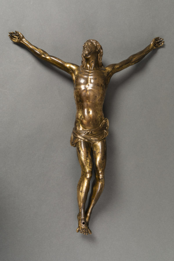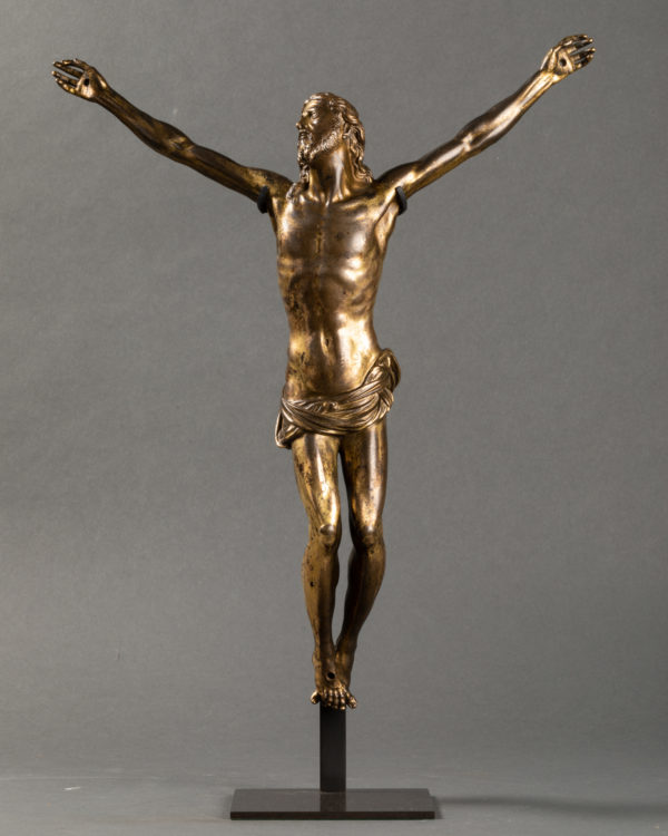 This piece can be compared to the corpus of the plastic artist Giambologna (1529-1608). Born Jehan de Boulongne (in Flemish) or Jean de Bologne or Boulogne (in French) in Douai in 1529, he completed his apprenticeship with the sculptor Jacques du Brouecq (1505v.-84) in Flanders. Around 1555, he leaves for Italy, where he is then called Giovanni Bologna (later contracted in Giambolonia). A complete artist, at the same time creator of sculptural and iconographic models, he produced a large corpus of « Corpora Christi ». The great success of his works is due in particular to his school. Indeed, it is most likely that Giambologna was at the origin of the initial models, drawn and then sometimes created in large format, and then executed by his students, or successors, in small formats intended to be offered as diplomatic gifts for example (notably by the Medici). This delegation of the production to his workshop allowed the diffusion of his models, made in greater numbers, especially at the end of the 16th and the first decade of the 17th century. Some members of this workshop stood out and became well known. This is notably the case of Antonio Susini, who worked there from 1570 and to whom a large number of casts are attributed.