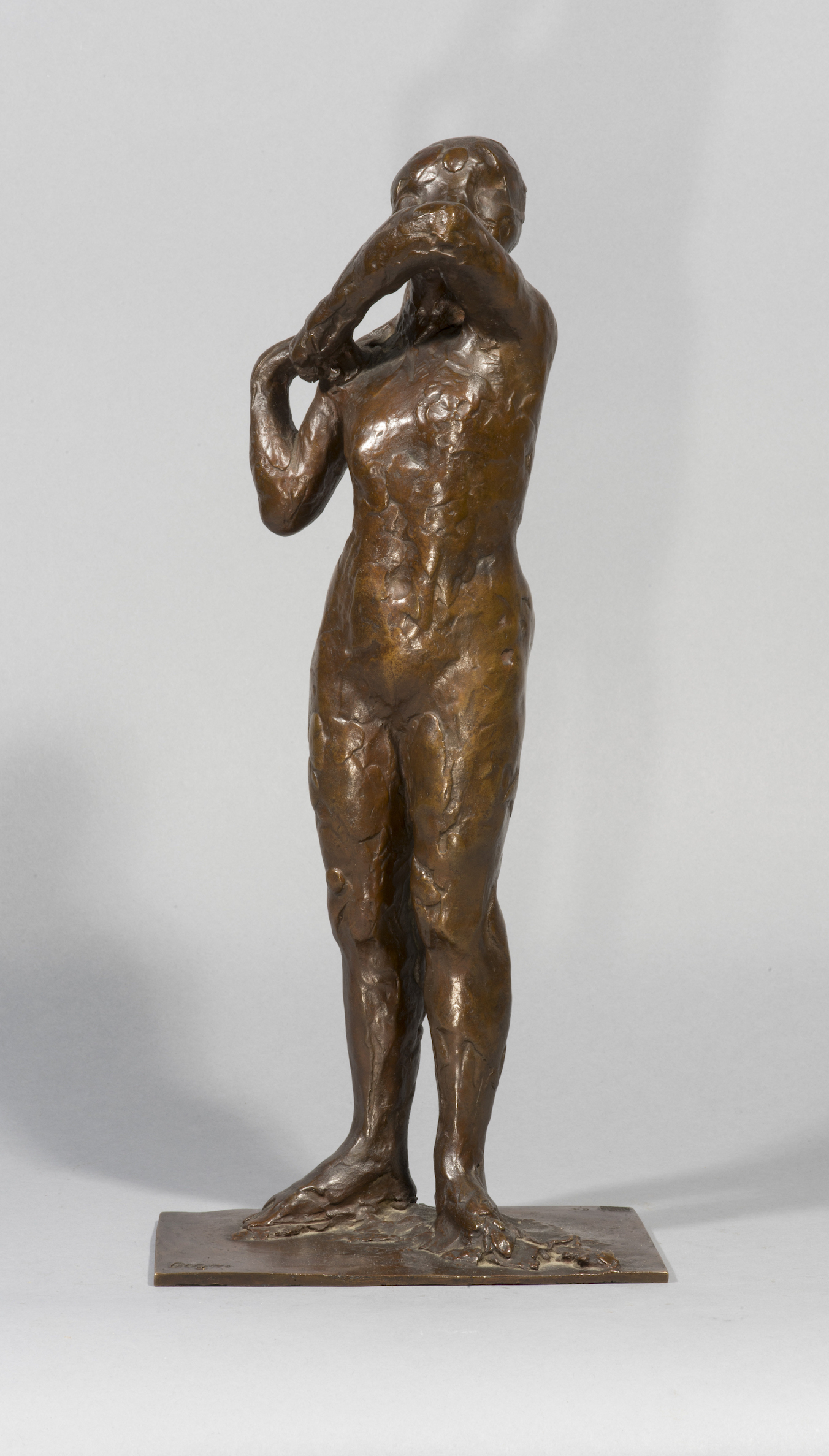 En 1919, le marchand Joseph Durand-Ruel, écrivait : « Il est tout à fait exact que Degas a passé énormément de temps, non seulement tout à la fin de sa vie mais au cours des cinquante dernières années, à modeler l’argile. Chaque fois que je me présentais chez Degas, j’étais presque aussi certain de le trouver en train de modeler l’argile que de peindre. ». Lorsque Degas mourut en 1917, Durand Ruel constata que plus de cent cinquante sculptures en cire ou en terre étaient dispersées dans l’atelier. Après qu’un contrat d’édition ait été difficilement signé en mai 1918 entre les héritiers de l’artiste et l’atelier de fonderie parisien d’Adrien-Aurélien Hébrard, soixante-quatorze sculptures furent finalement fondues en bronze. Une série marquée « HER.D » fut réservée aux héritiers, tandis qu’une seconde, allouée à la fonderie, portait l’inscription « HER ». Vingt autres séries destinées à la vente et qui devaient être marquées « 2-21 » se virent attribuer à la place les lettres « A-T ». Le milanais Albino Palazollo, le maître fondeur d’Hébrard, expert en matière de fonte à la cire perdue avait mis au point une méthode permettant de préserver l’original en cire de l’artiste tout au long du processus de fonte du bronze.