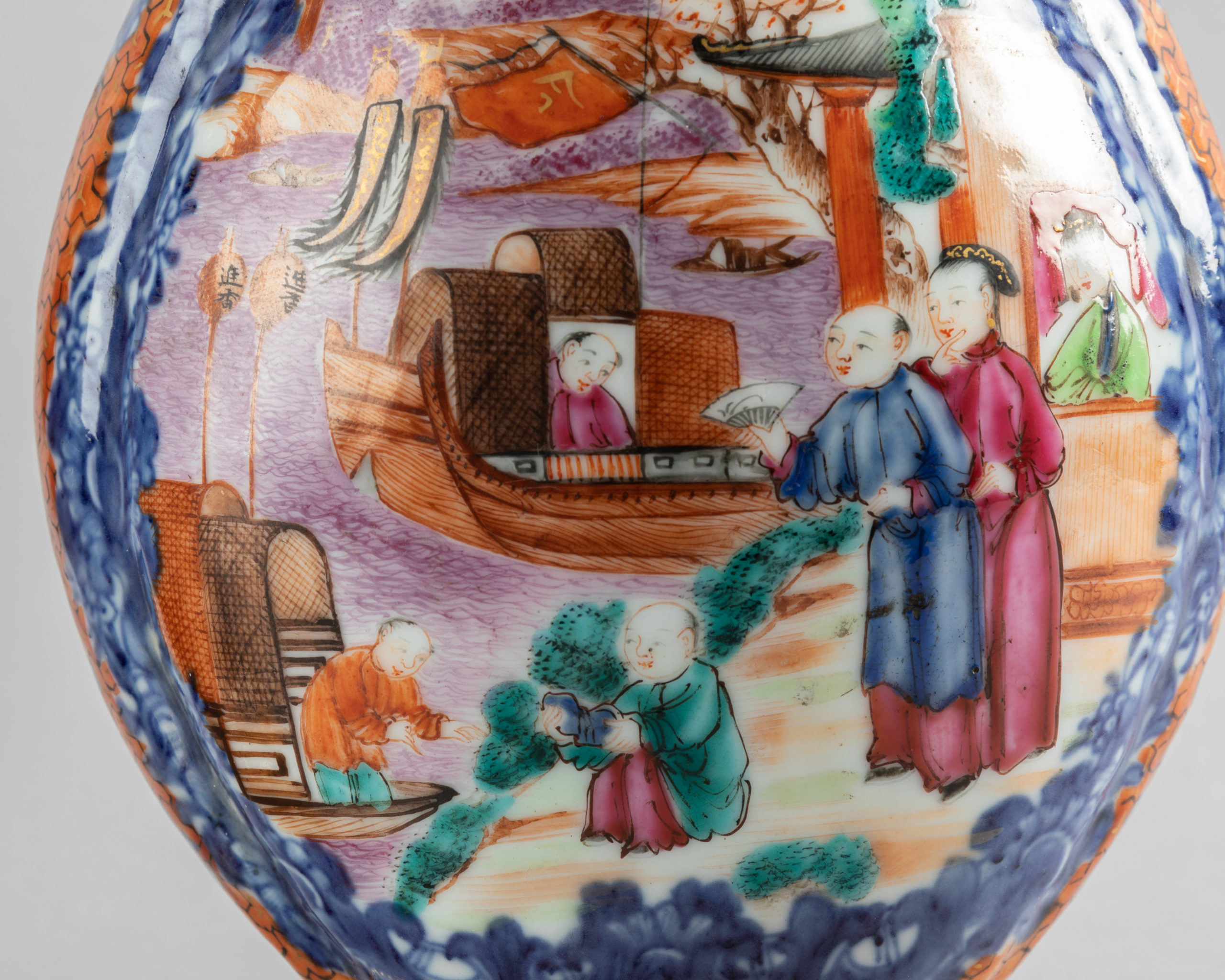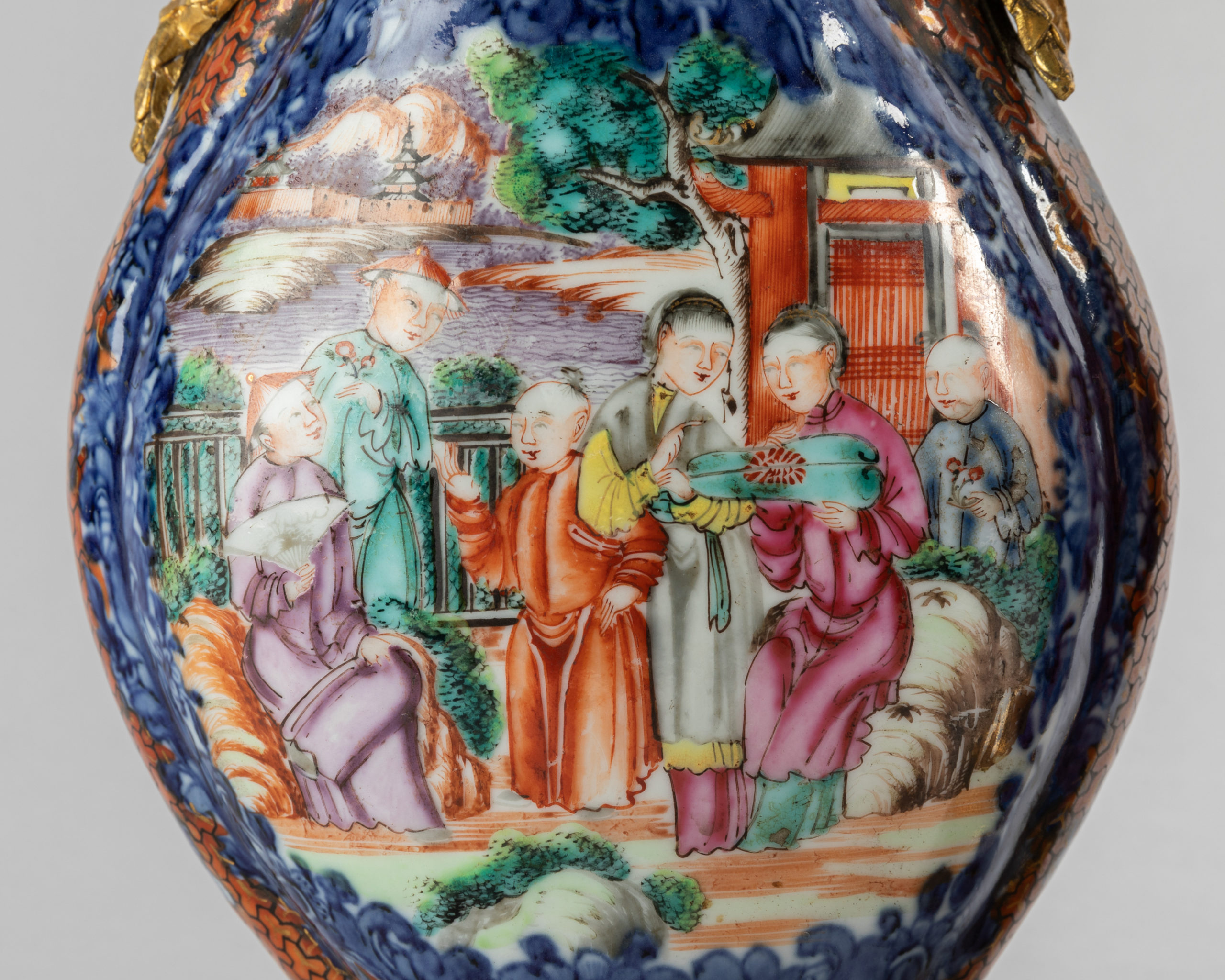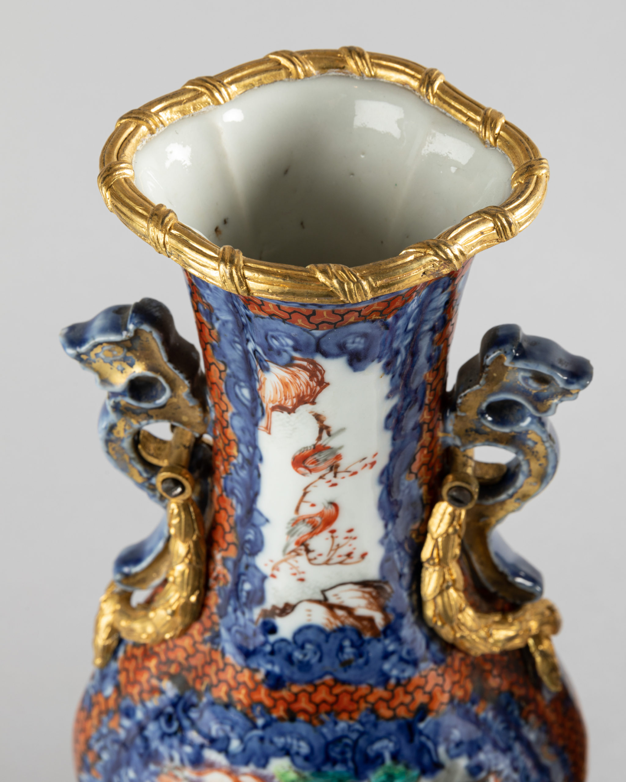 Two vases forming pair in China porcelain Qianlong period, decor au mandarin, on decorated 18th century, ormolu mounted Louis XVI period. Size in inches : width 6 X height 13 X depth 4,5