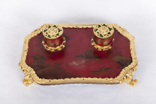 19th Century Ormolu-Mounted Lacquer Inkwell