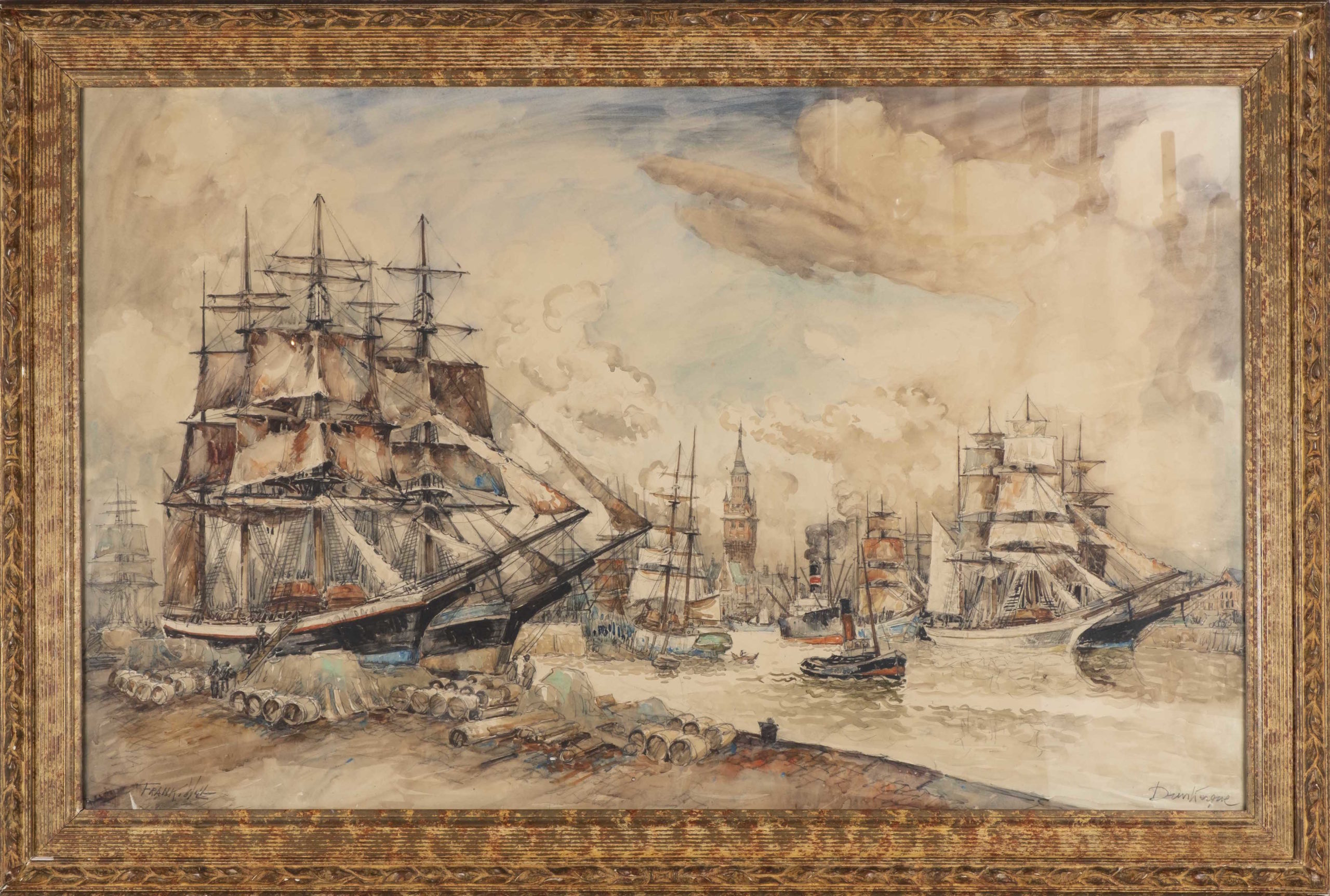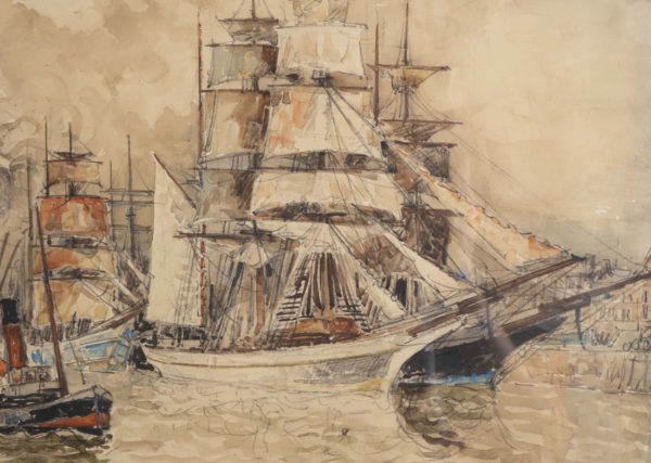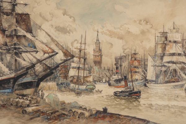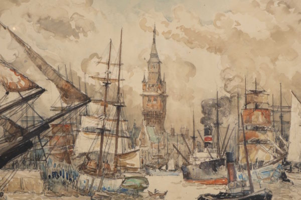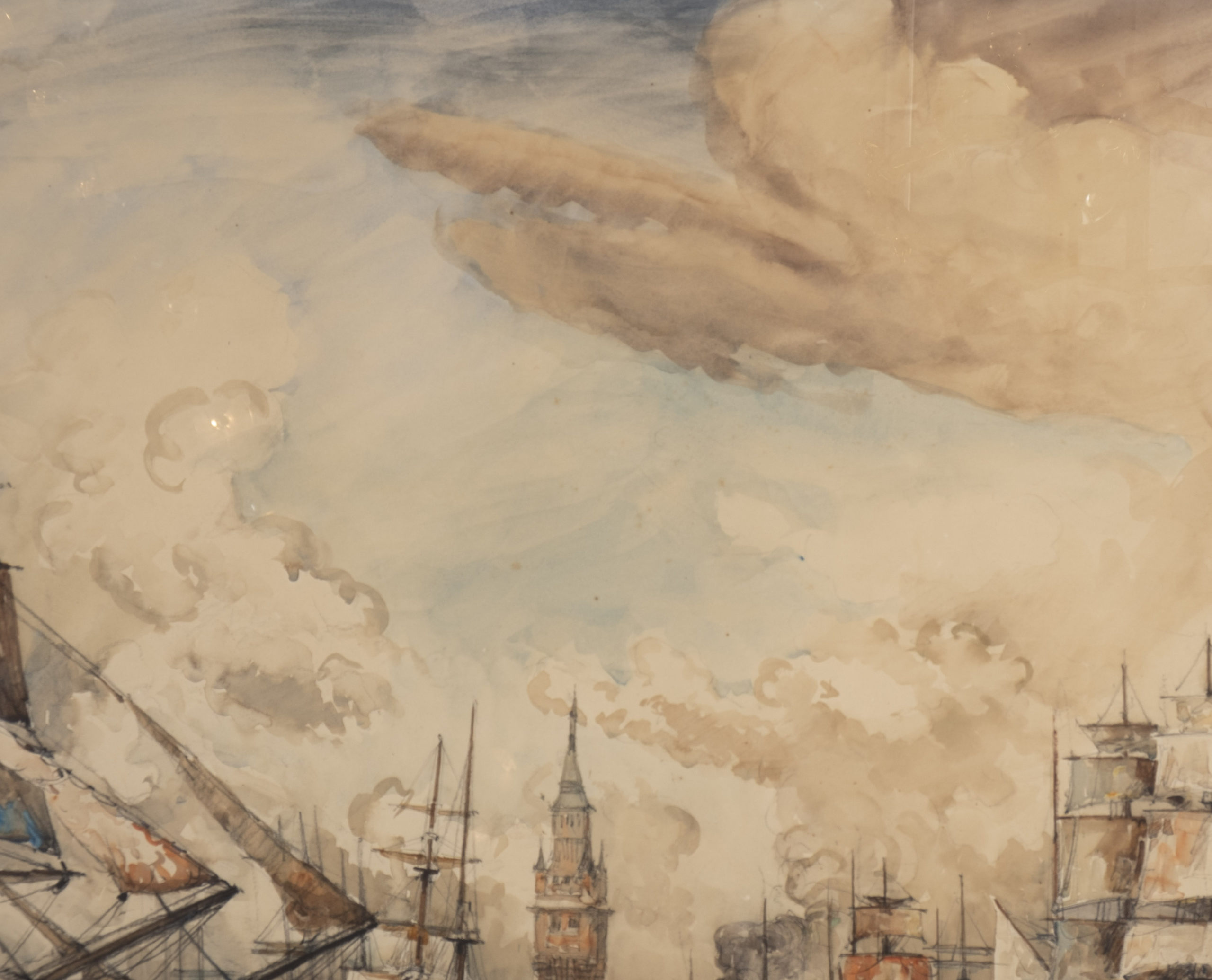 Grande aquarelle sur papier signé en bas à gauche et titré en bas à droite