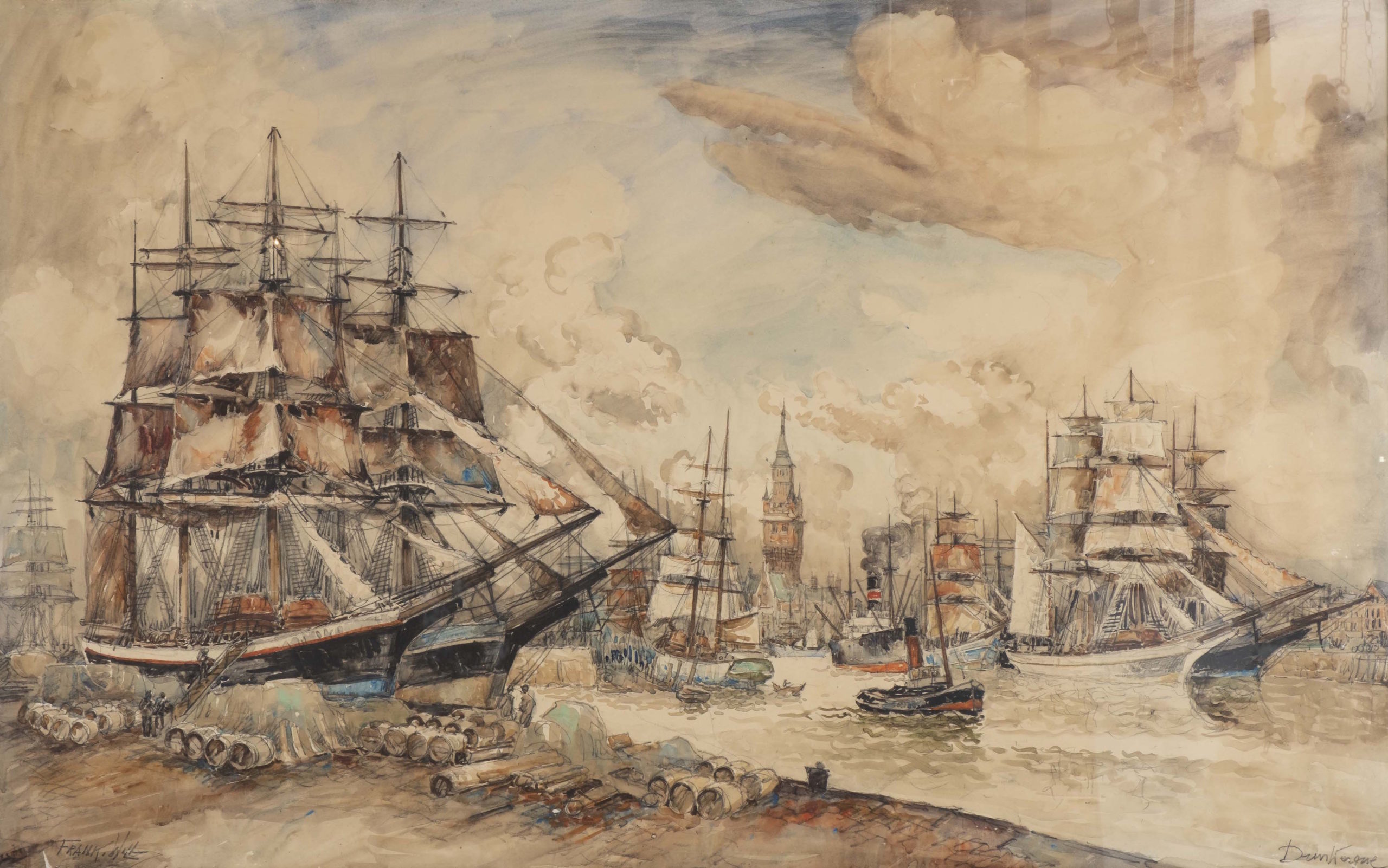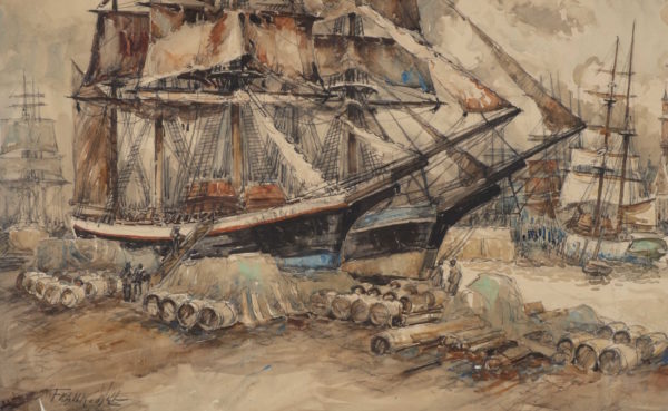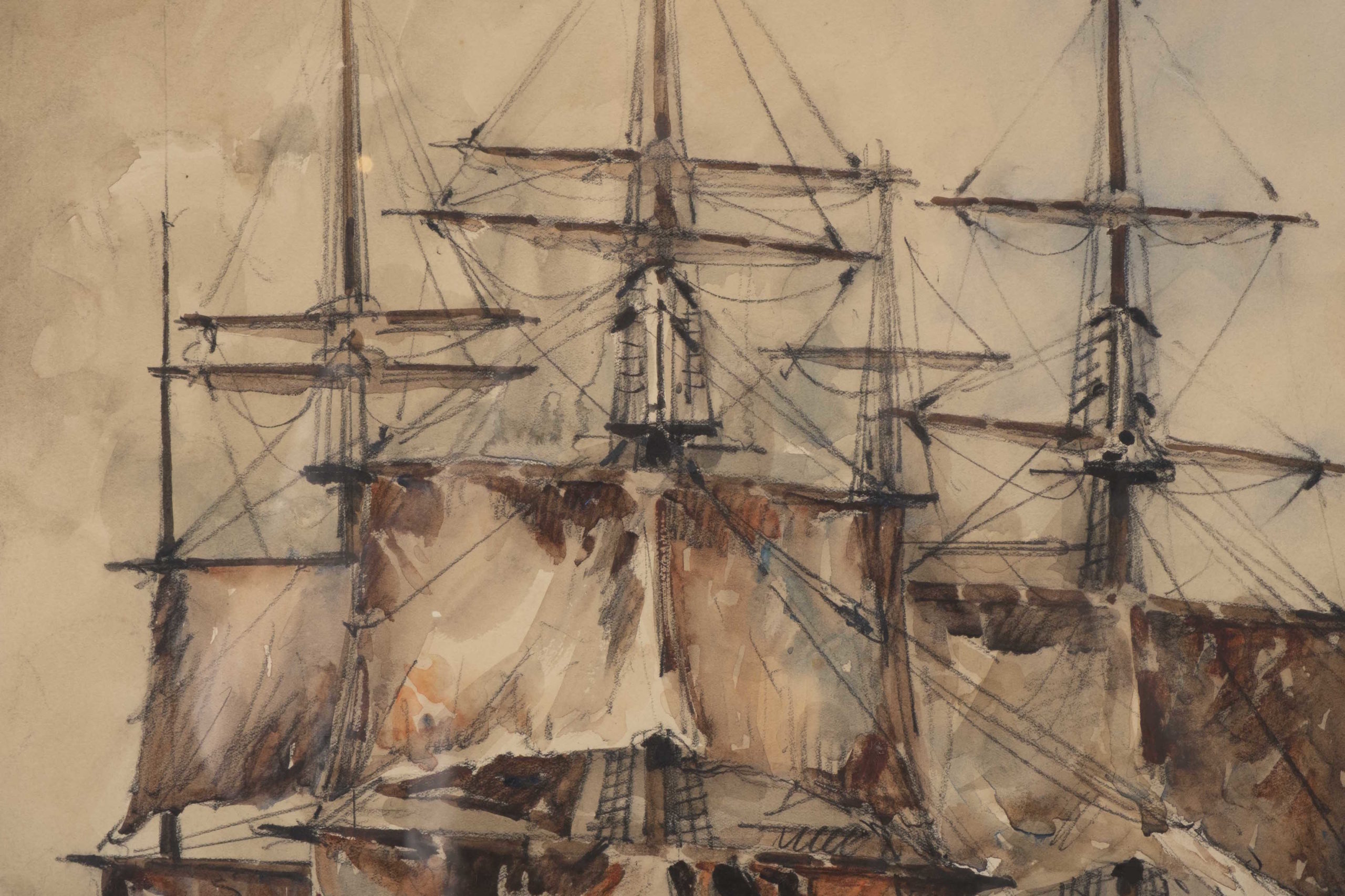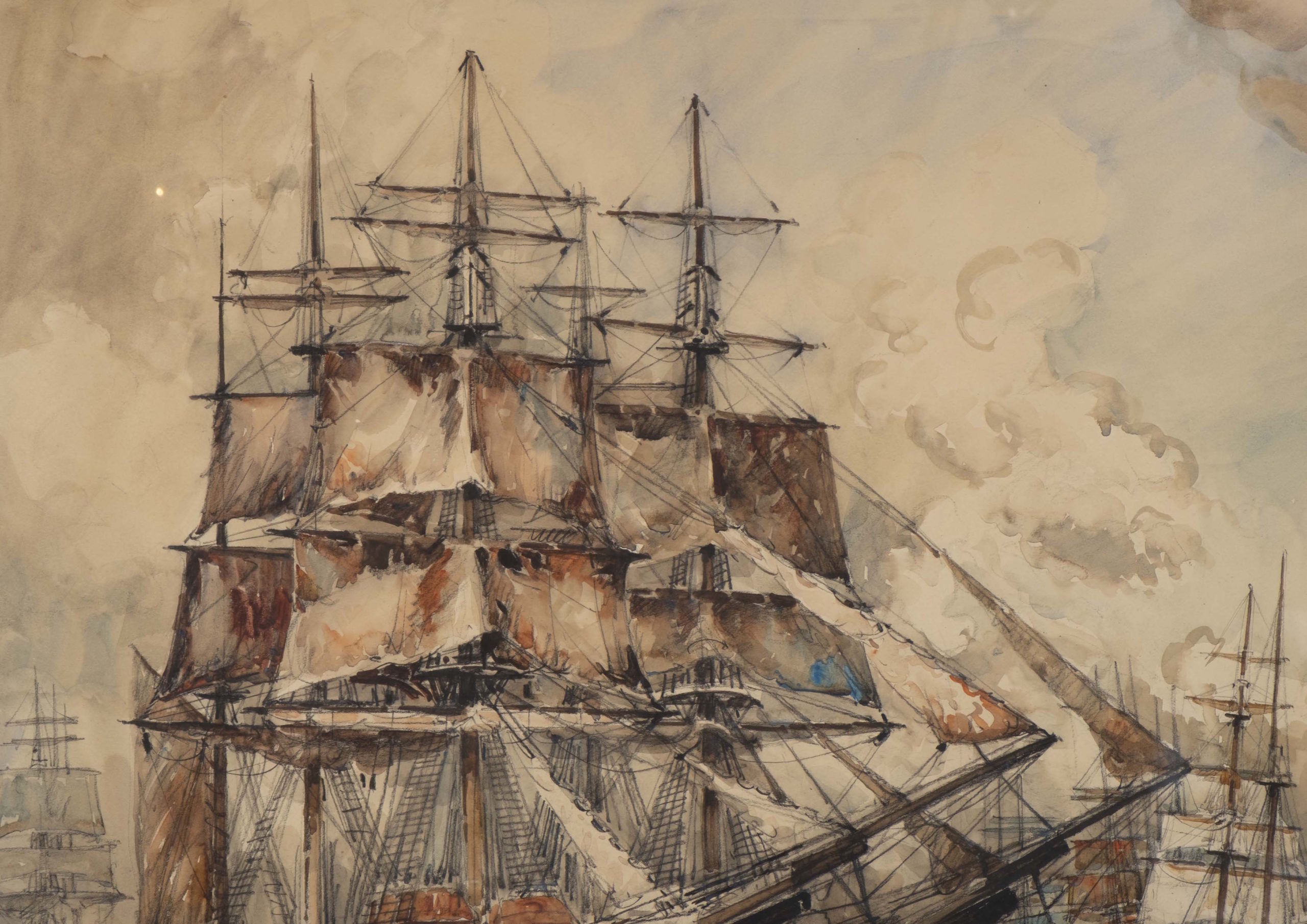 Grande aquarelle sur papier signé en bas à gauche et titré en bas à droite
