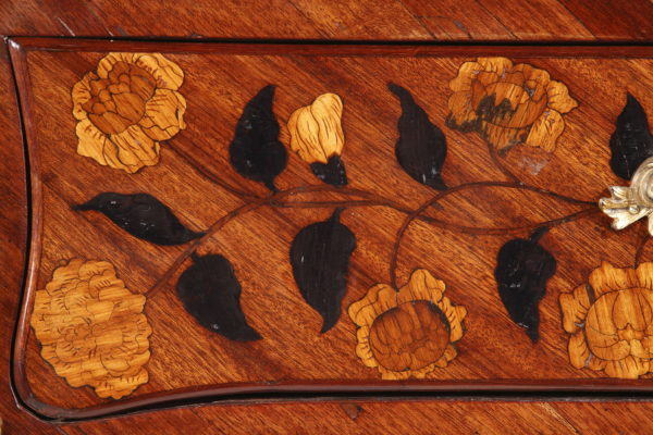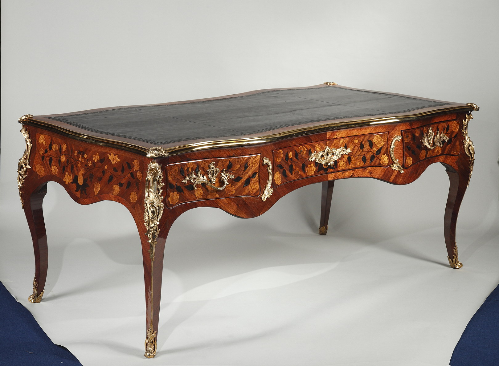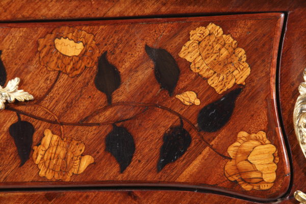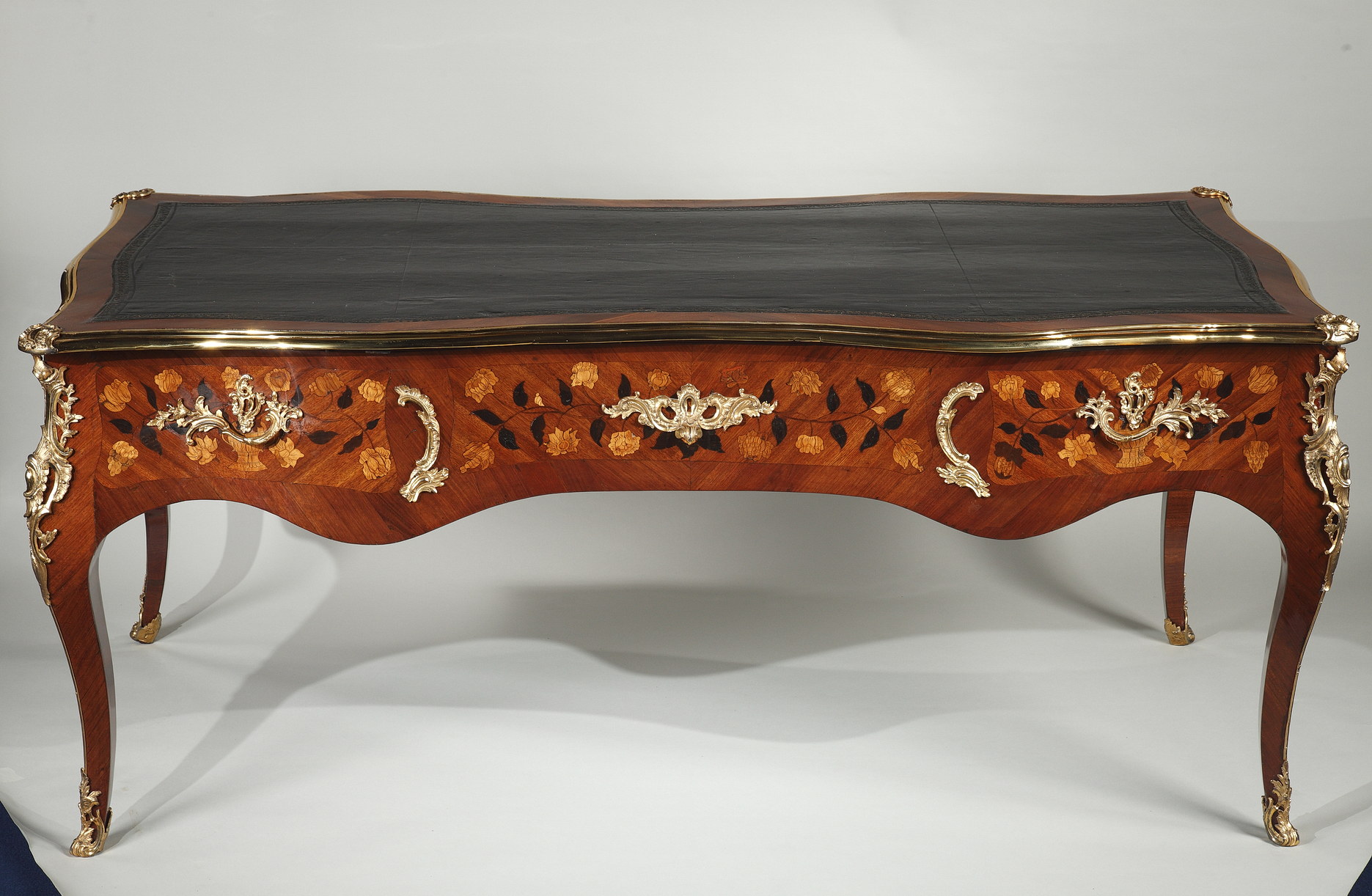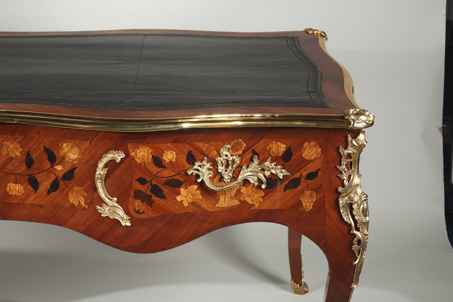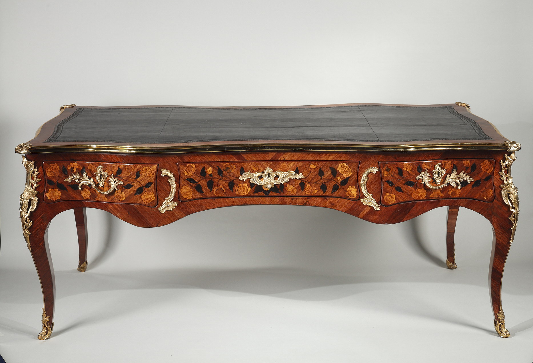 Riche garniture de bronze doré finement ciselé sur les chutes, entrées de serrures, poignées et sabots