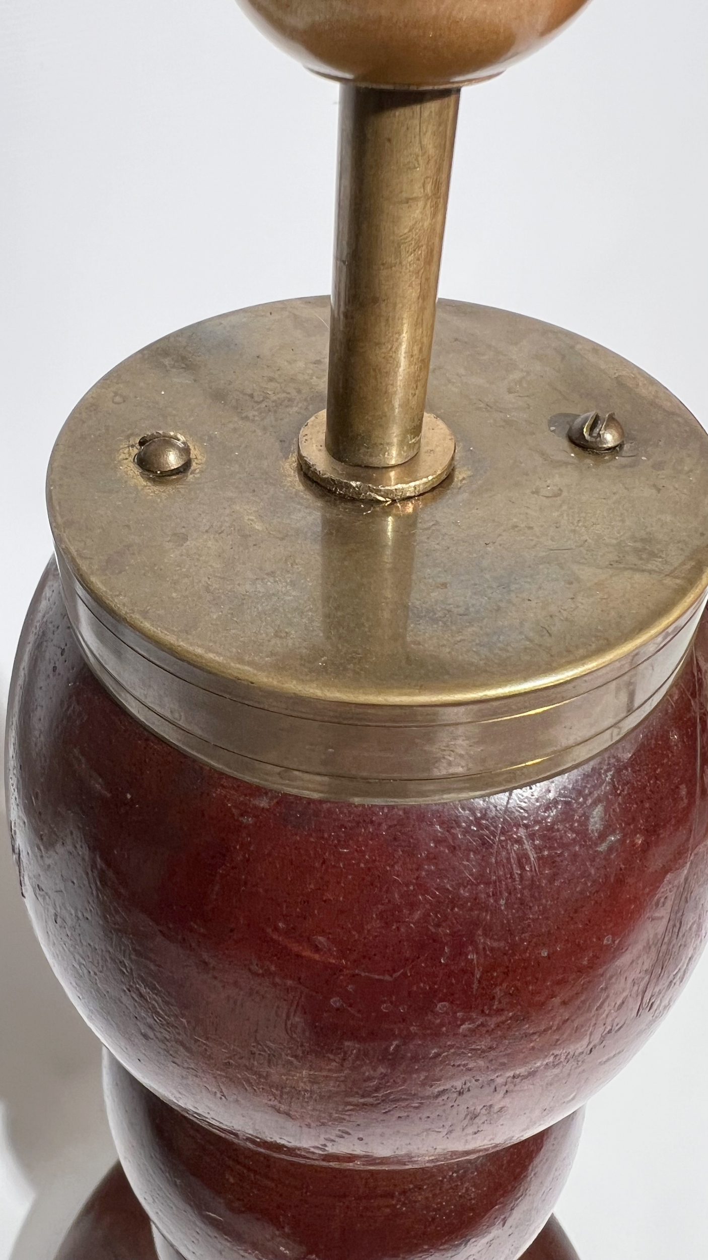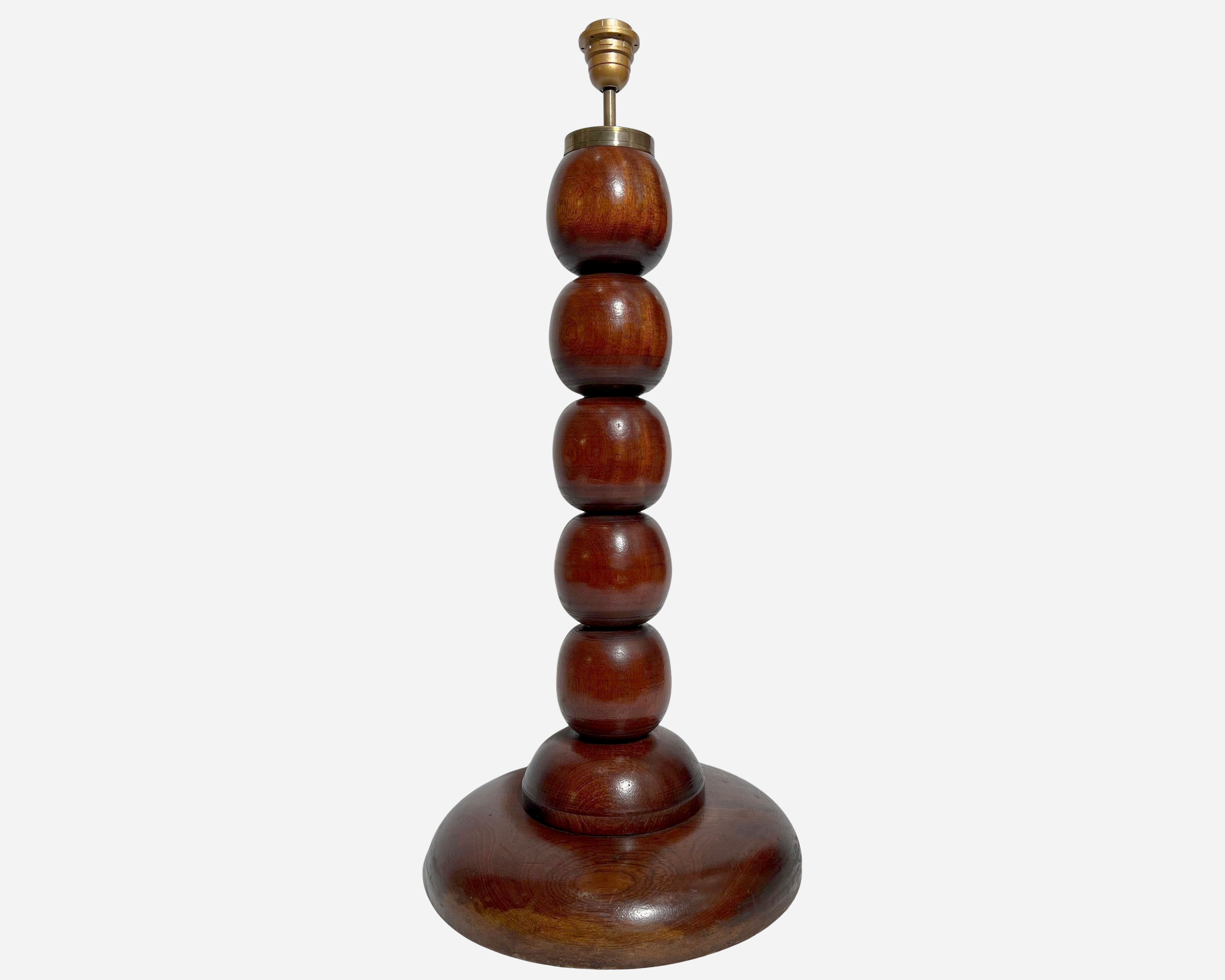 Large wooden lamp base turned into stacked balls, attributed to Charles Dudouyt.