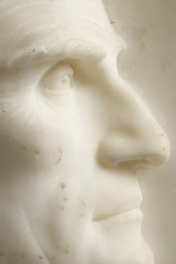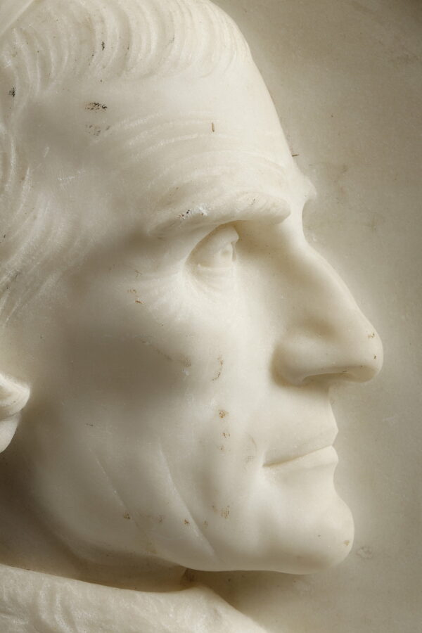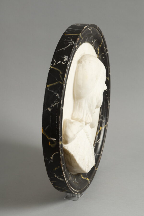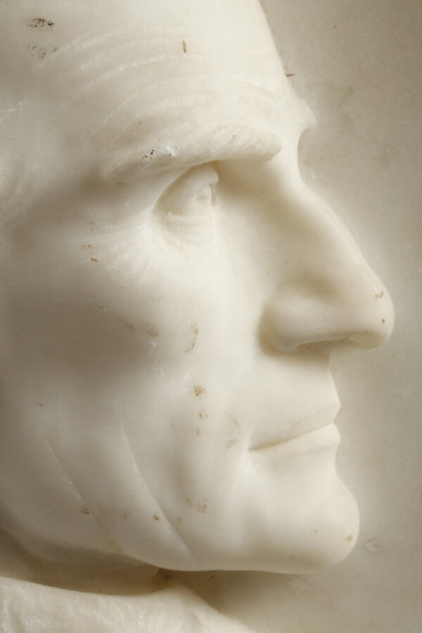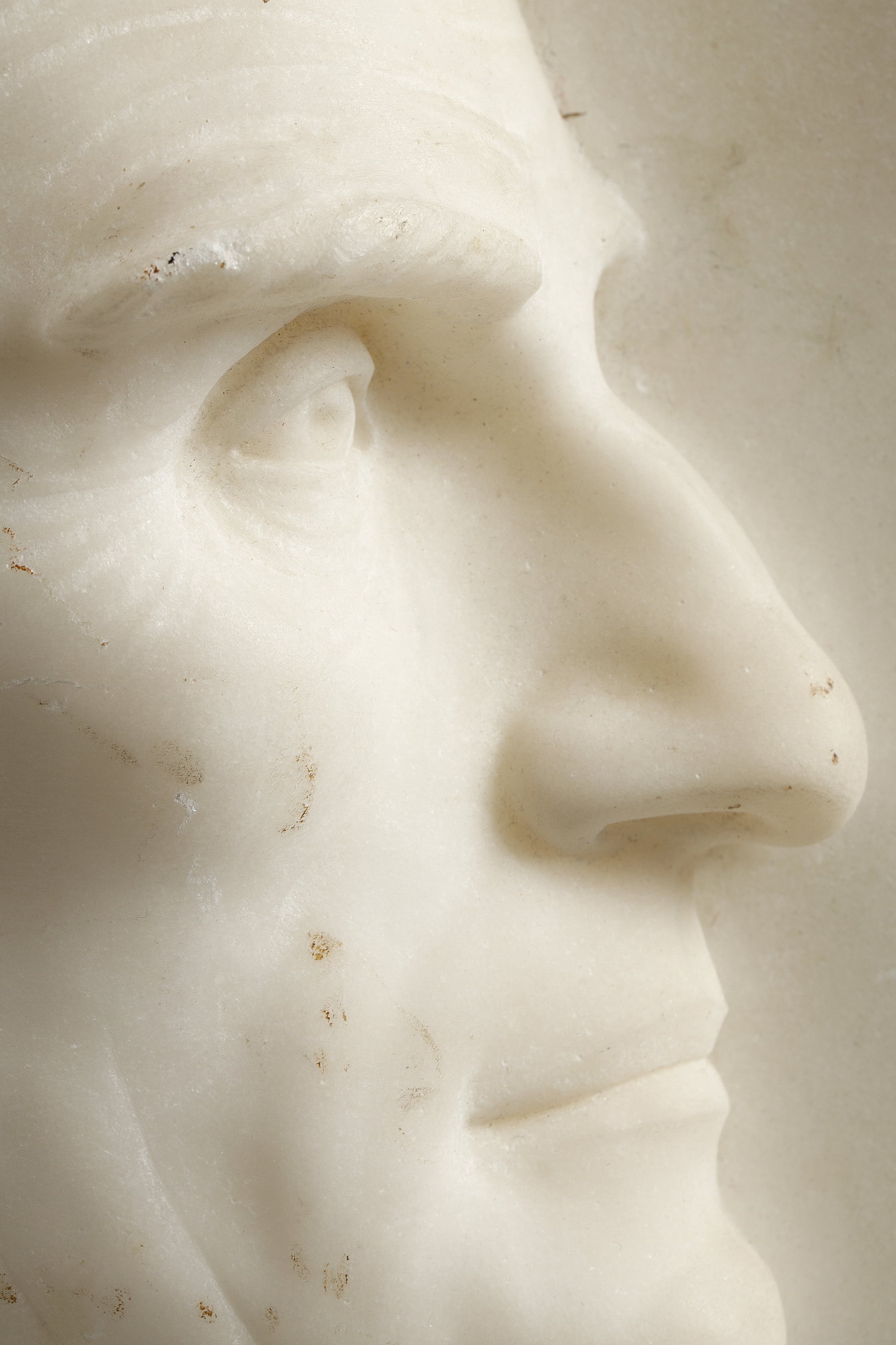 Large Carrara marble Tondo with straight profile of an 18th century pope.