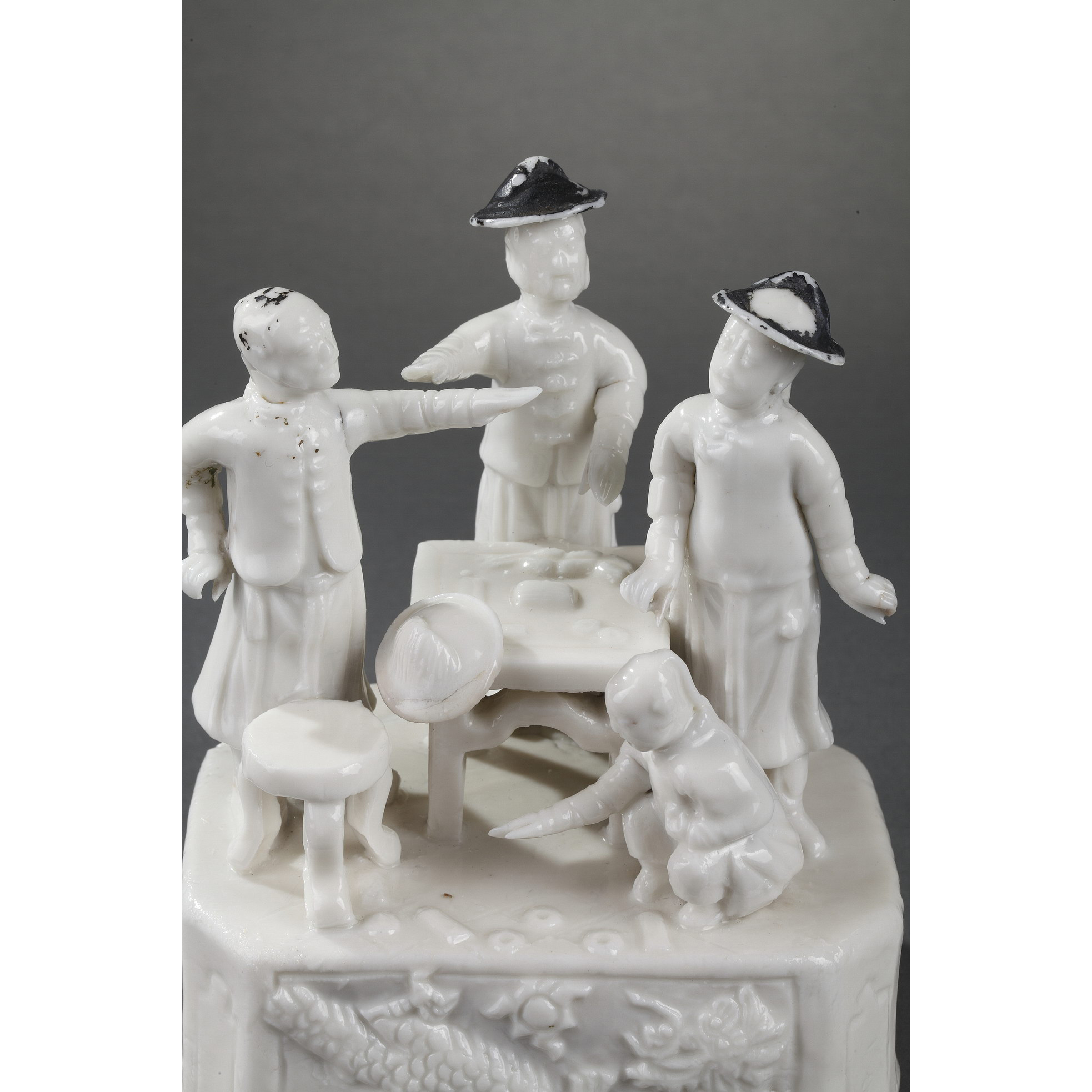 Groupe en porcelaine « Blanc de Chine » représentant des personnages autour d’une table à jeux.