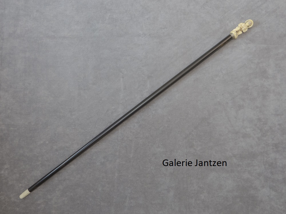 Sur un fût en ébène, bague en métal, férule en ivoire.