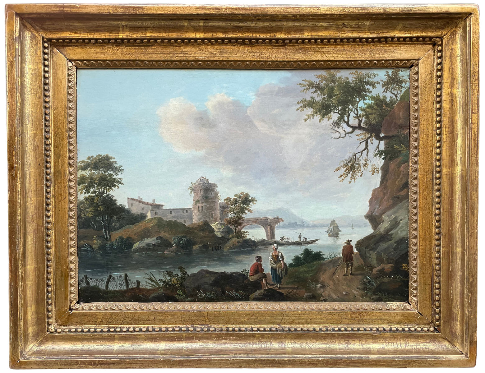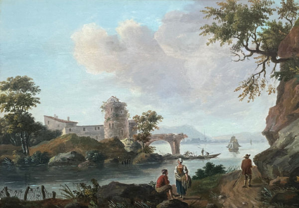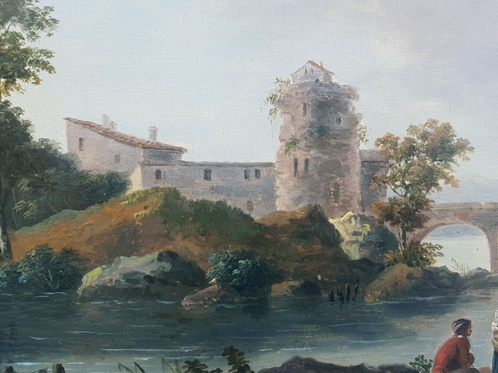 En premier plan, des promeneurs. Le tout peint avec une grande délicatesse et finesse.