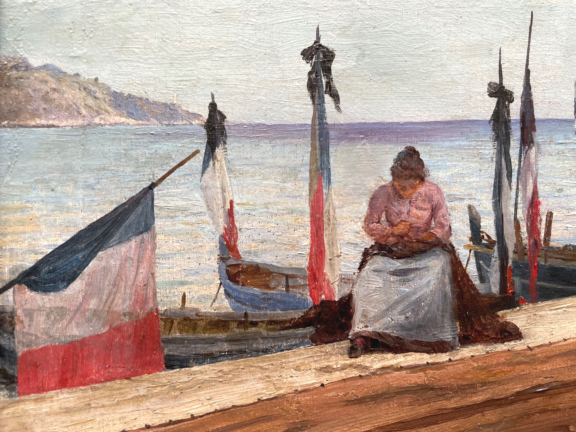 Les femmes de pêcheurs reprisant les filets de pêche le jour de la fête nationale française.