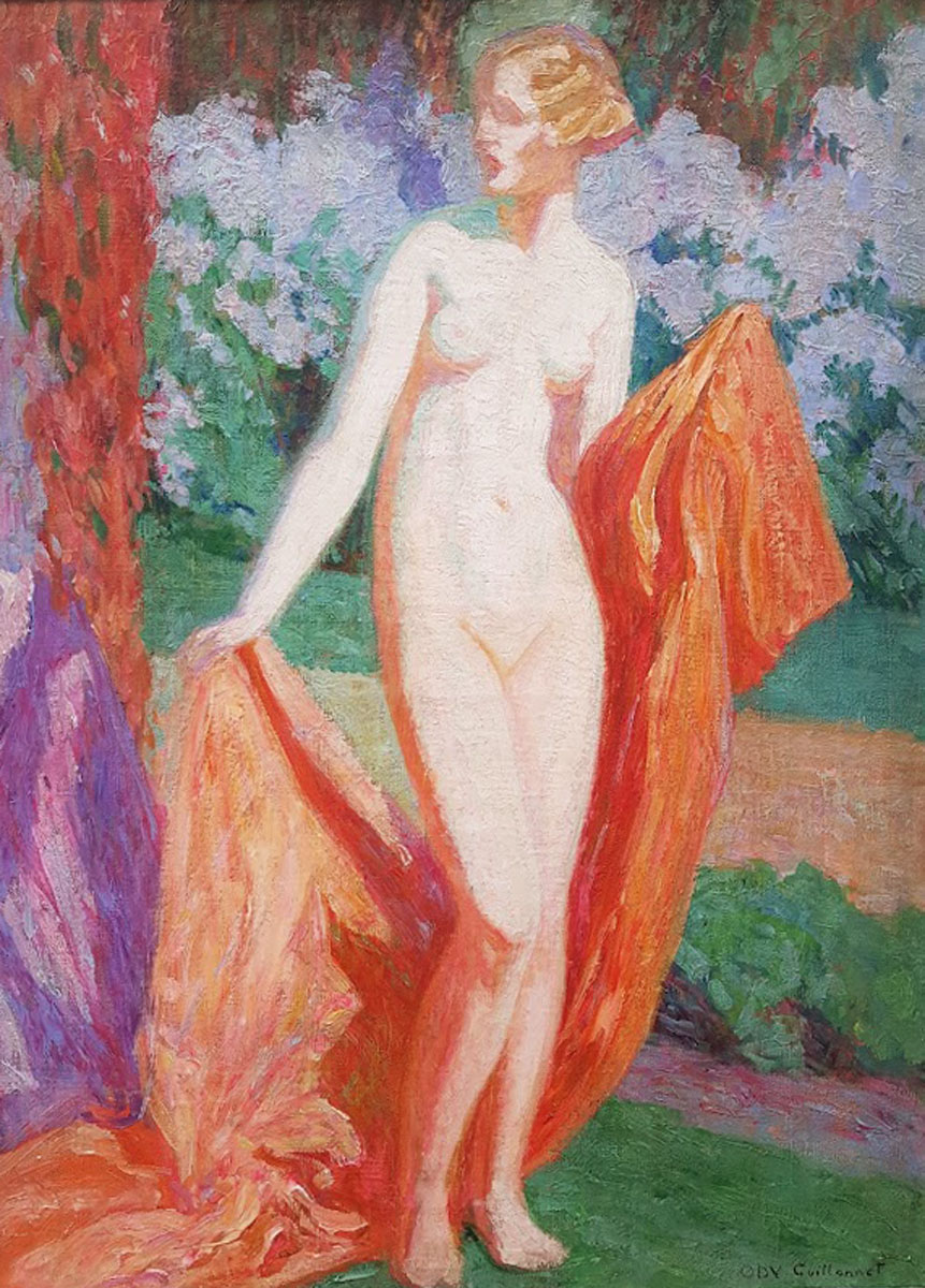 L’orange, le violet, offrent un contraste saisissant avec la blancheur de sa peau. Guillonnet montre ici tout son talent de coloriste