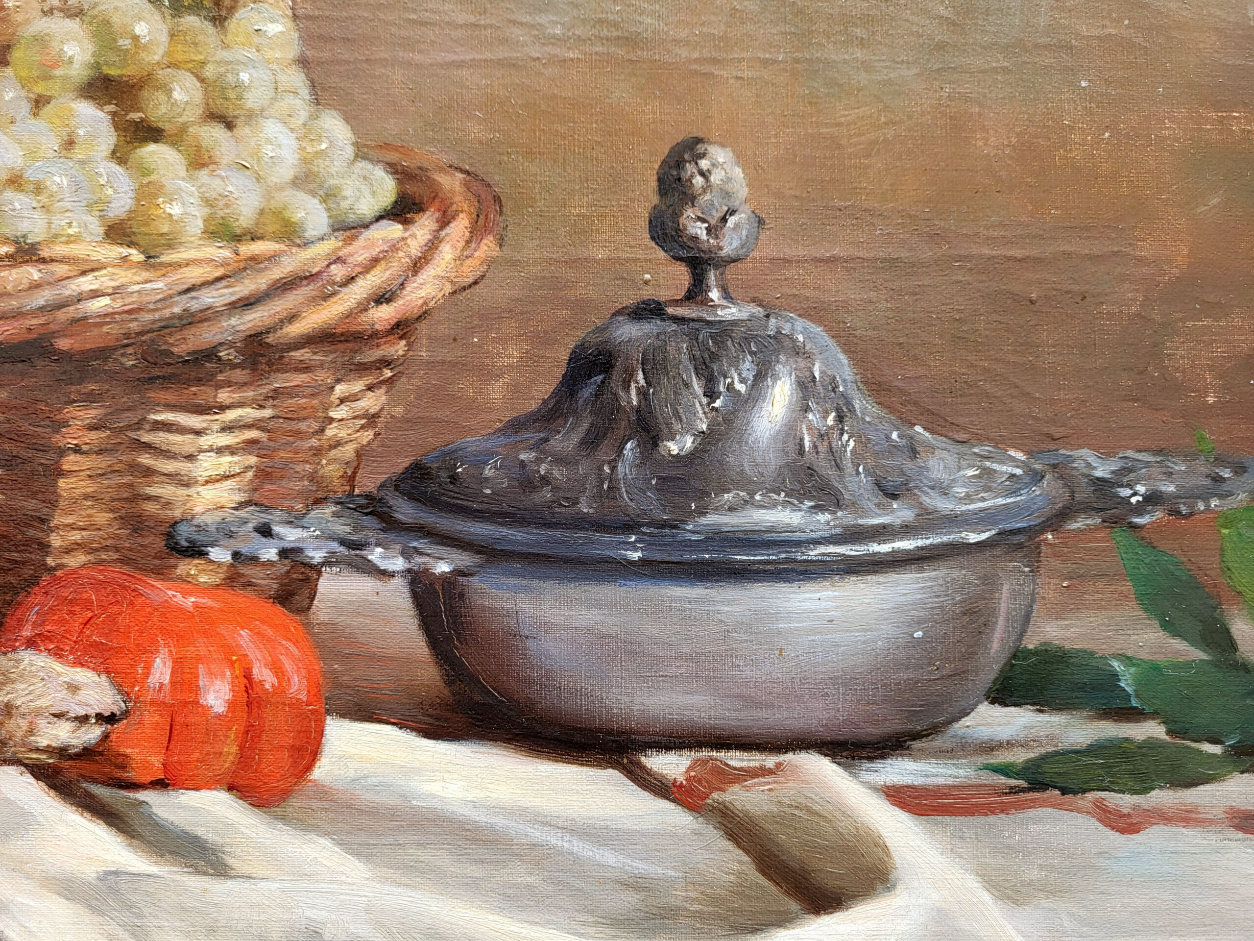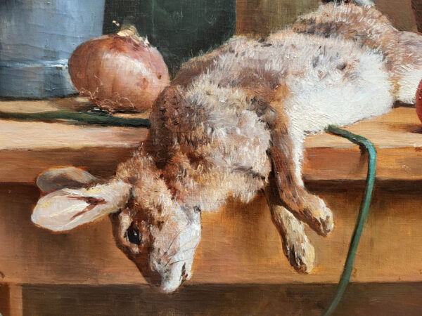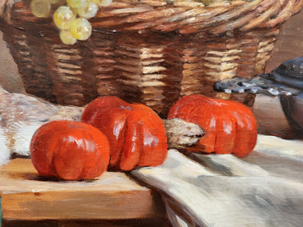 Il excelle a dans les tableaux champêtres, des scènes de genre et des natures-morte comme la notre dans un style plus naturaliste et réaliste.