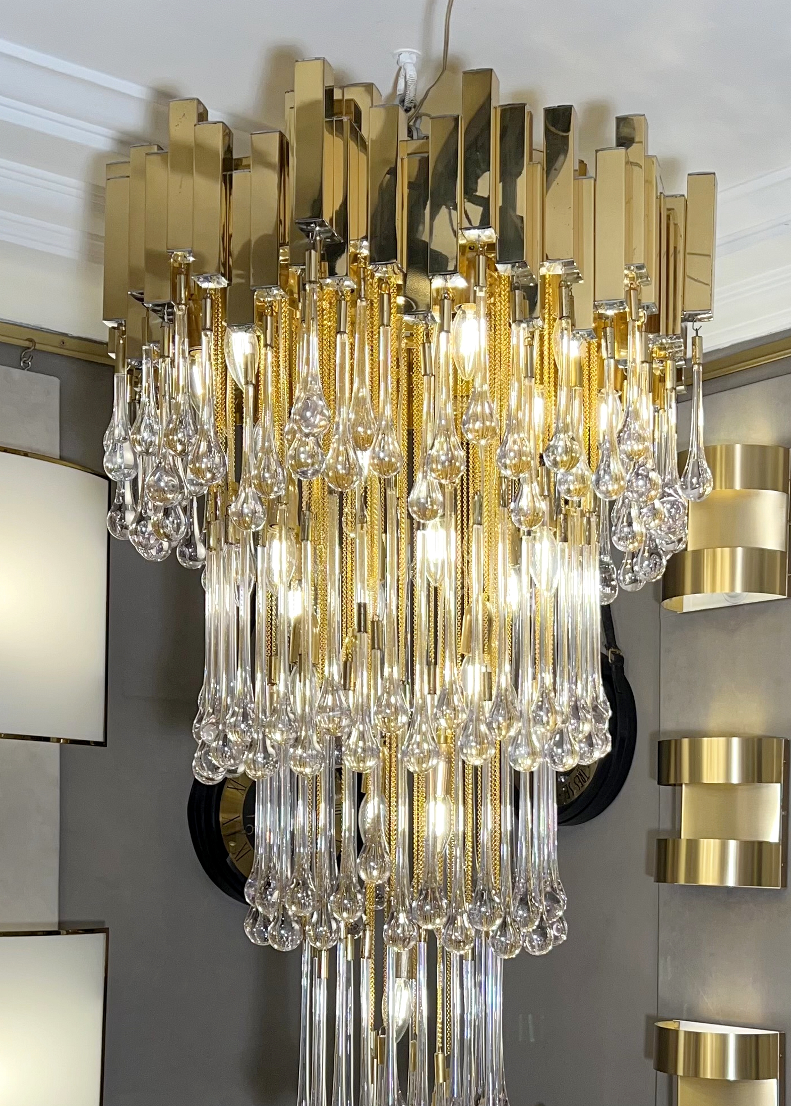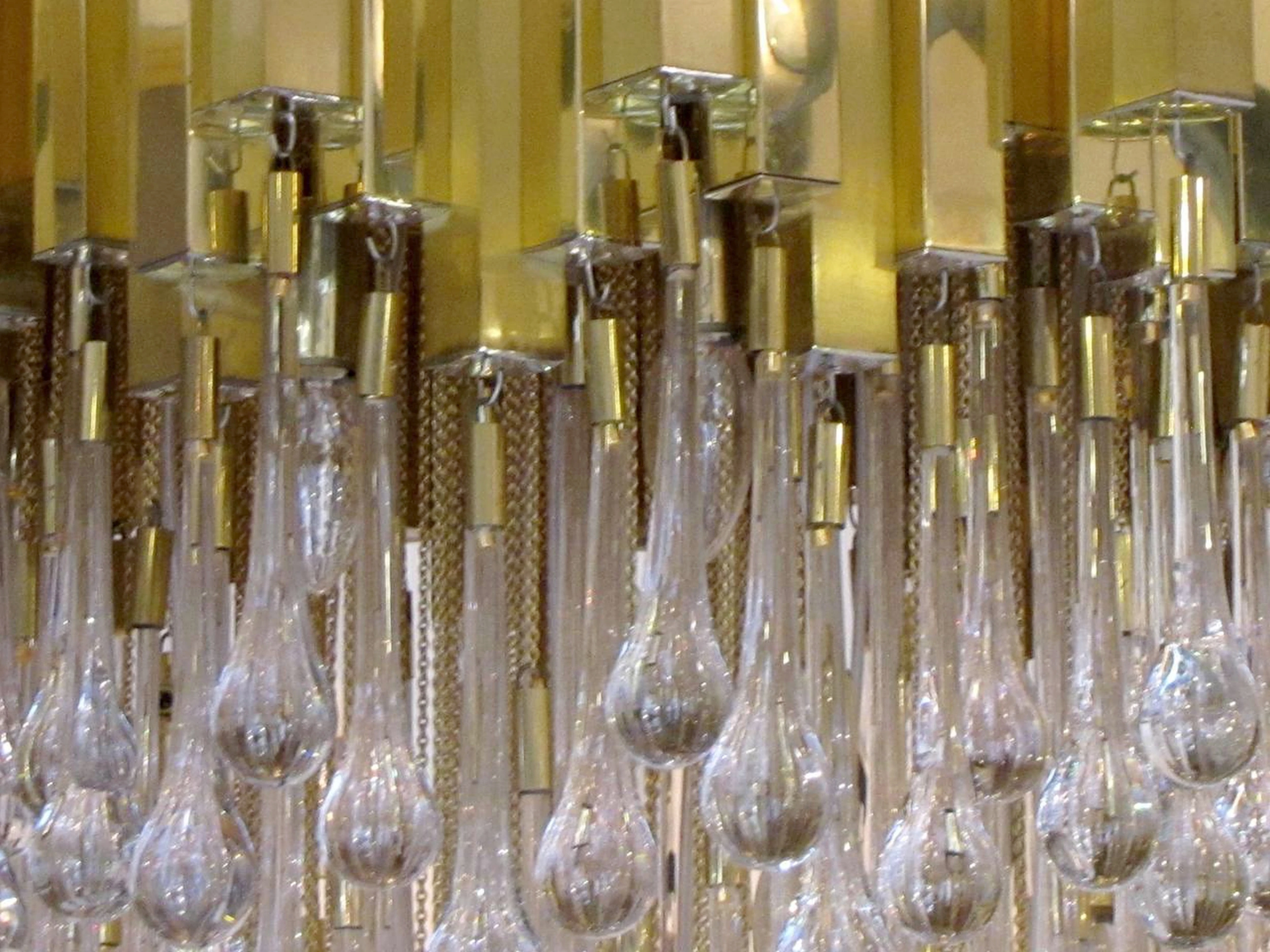 are suspended by means of gold-plated metal chains. 230 glass drops.