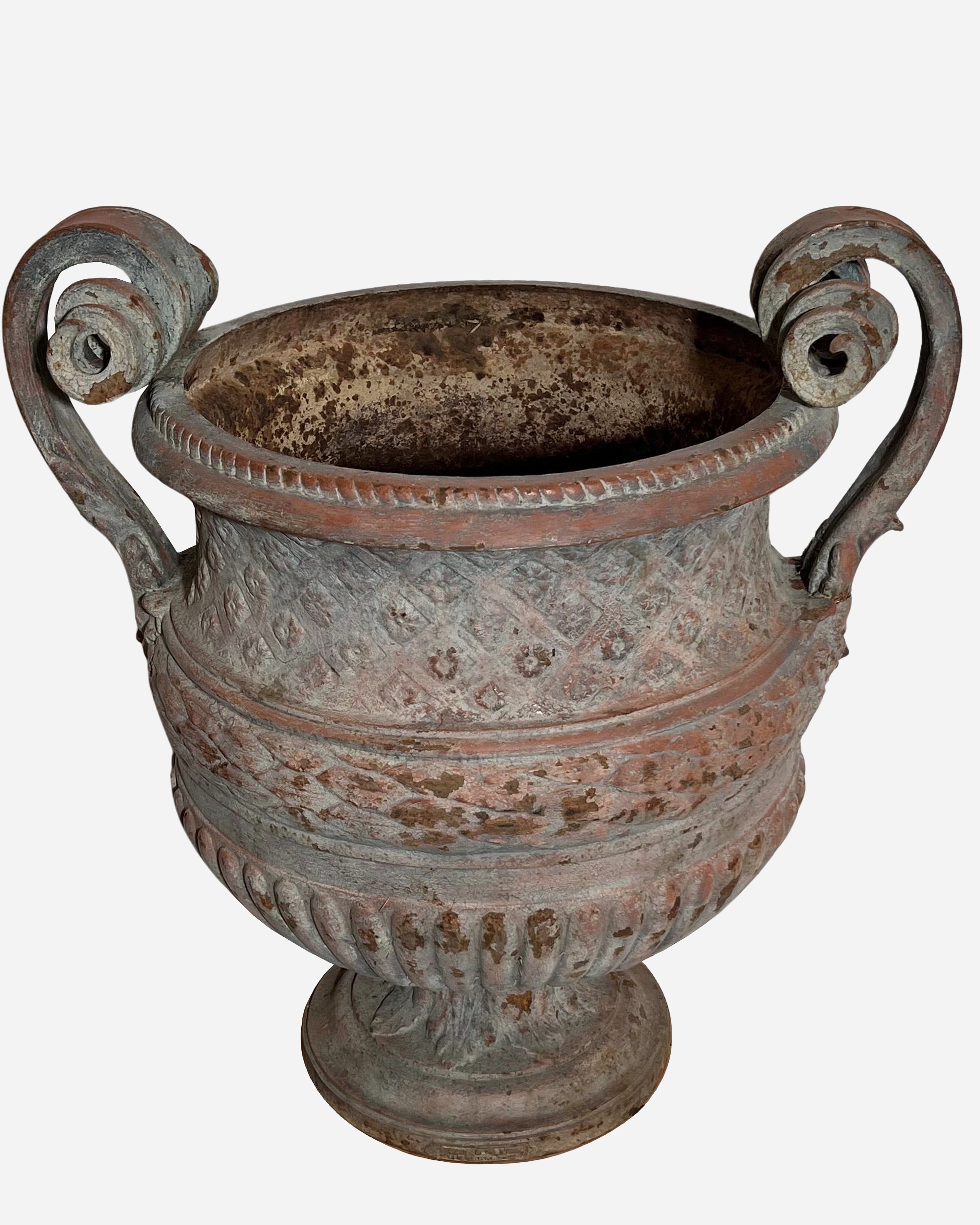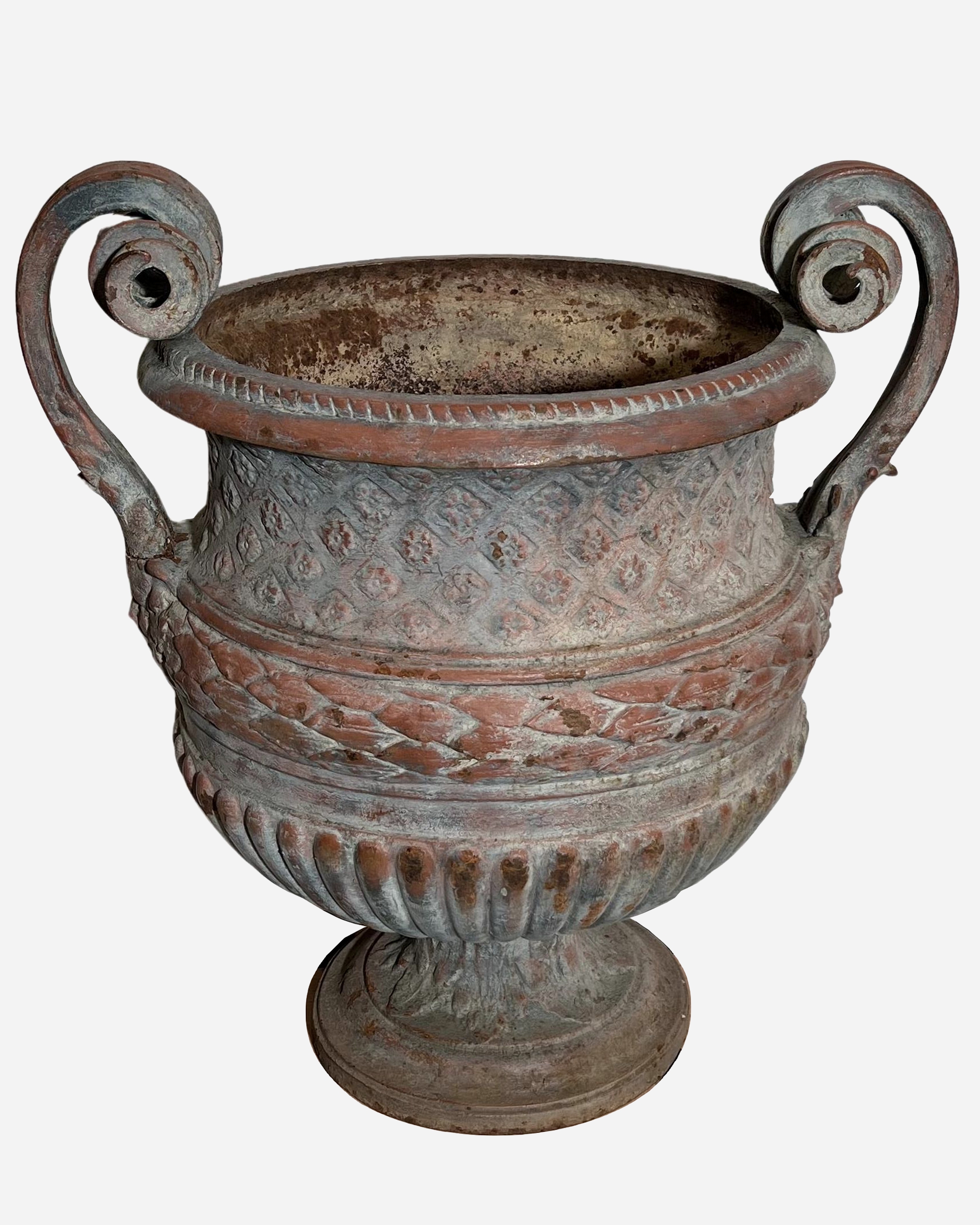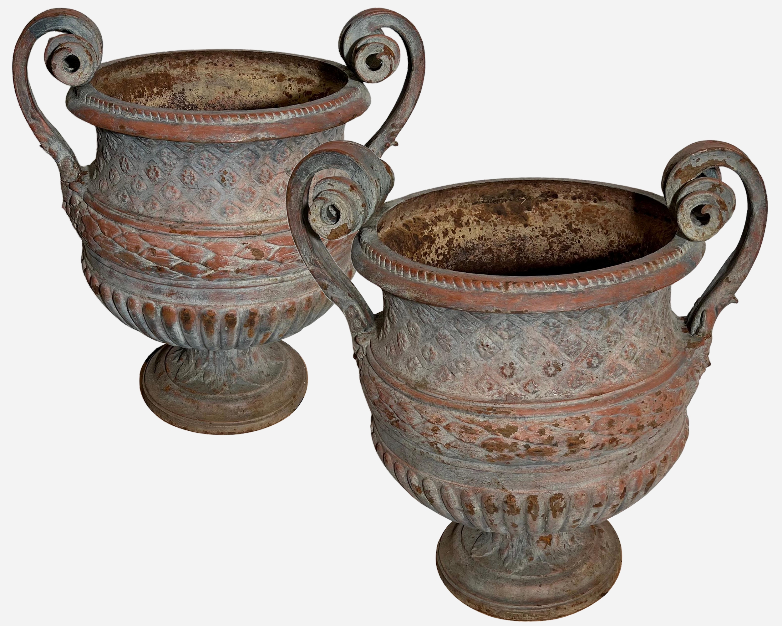 Splendid and important pair of cast iron garden vases from the Val d’Osne foundry.