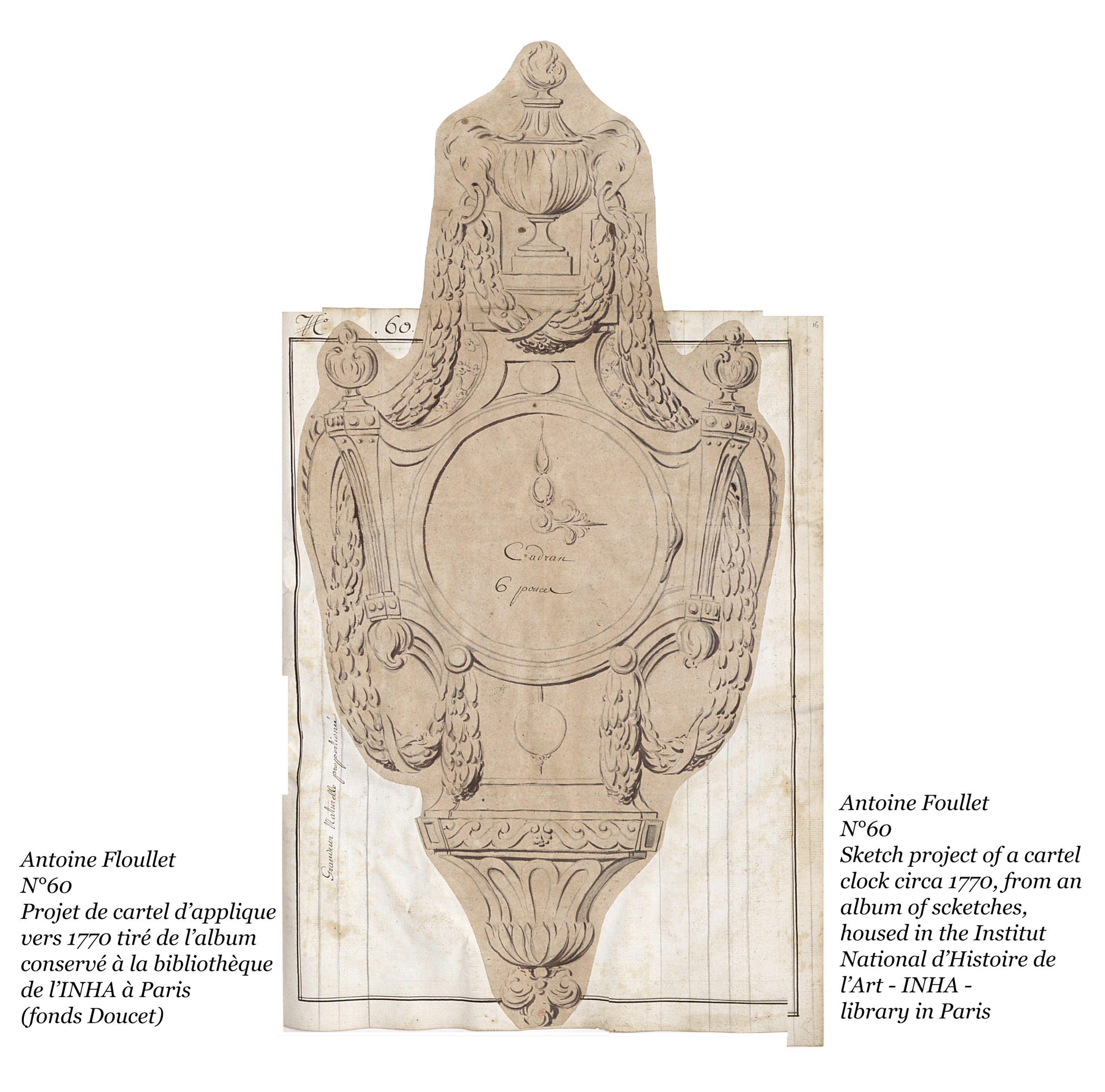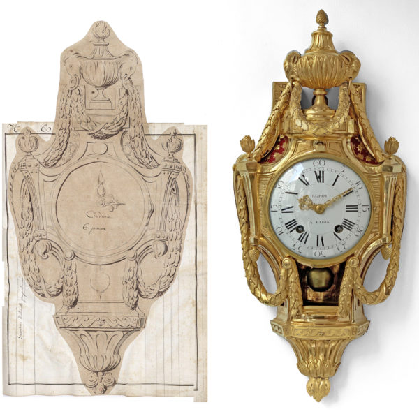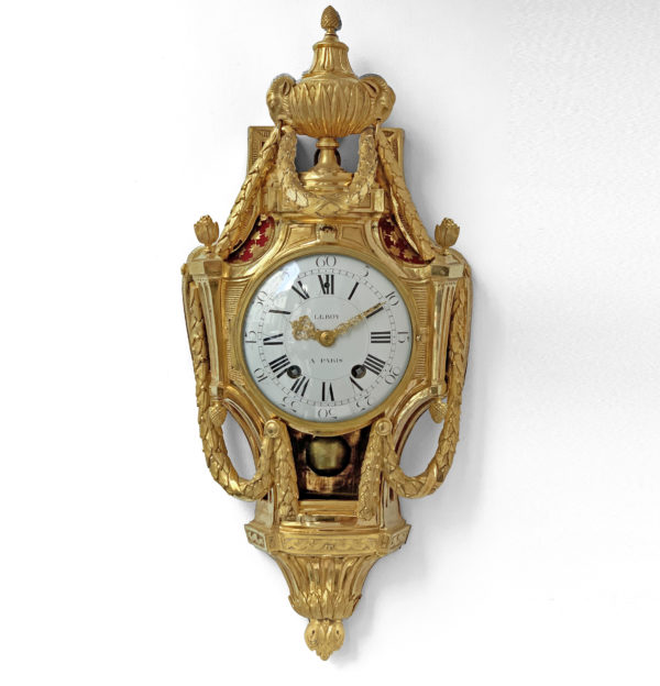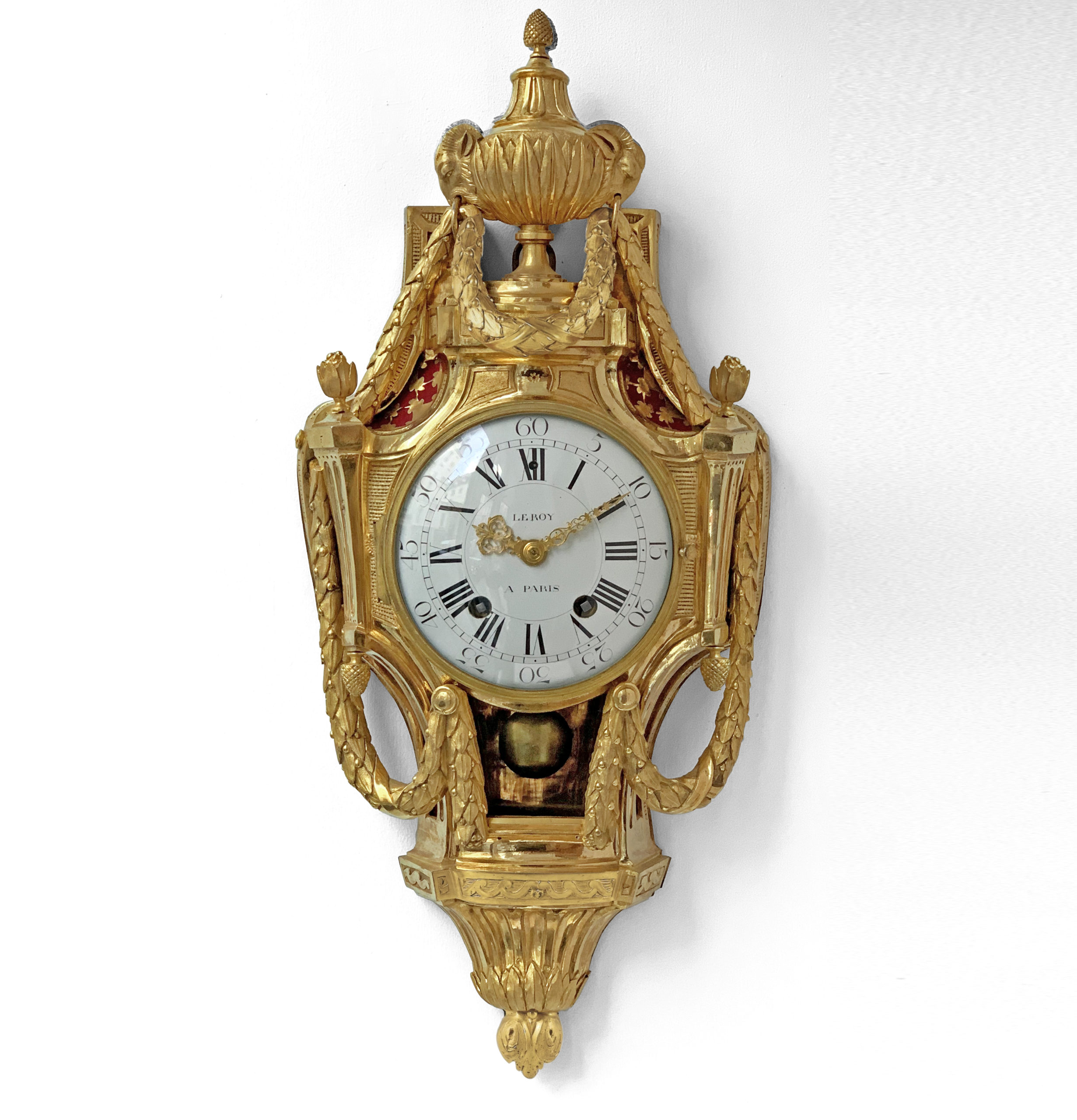 LE ROY ET FOULLET. CARTEL A GUIRLANDES ET VASE GOUT GREC VERS 1770