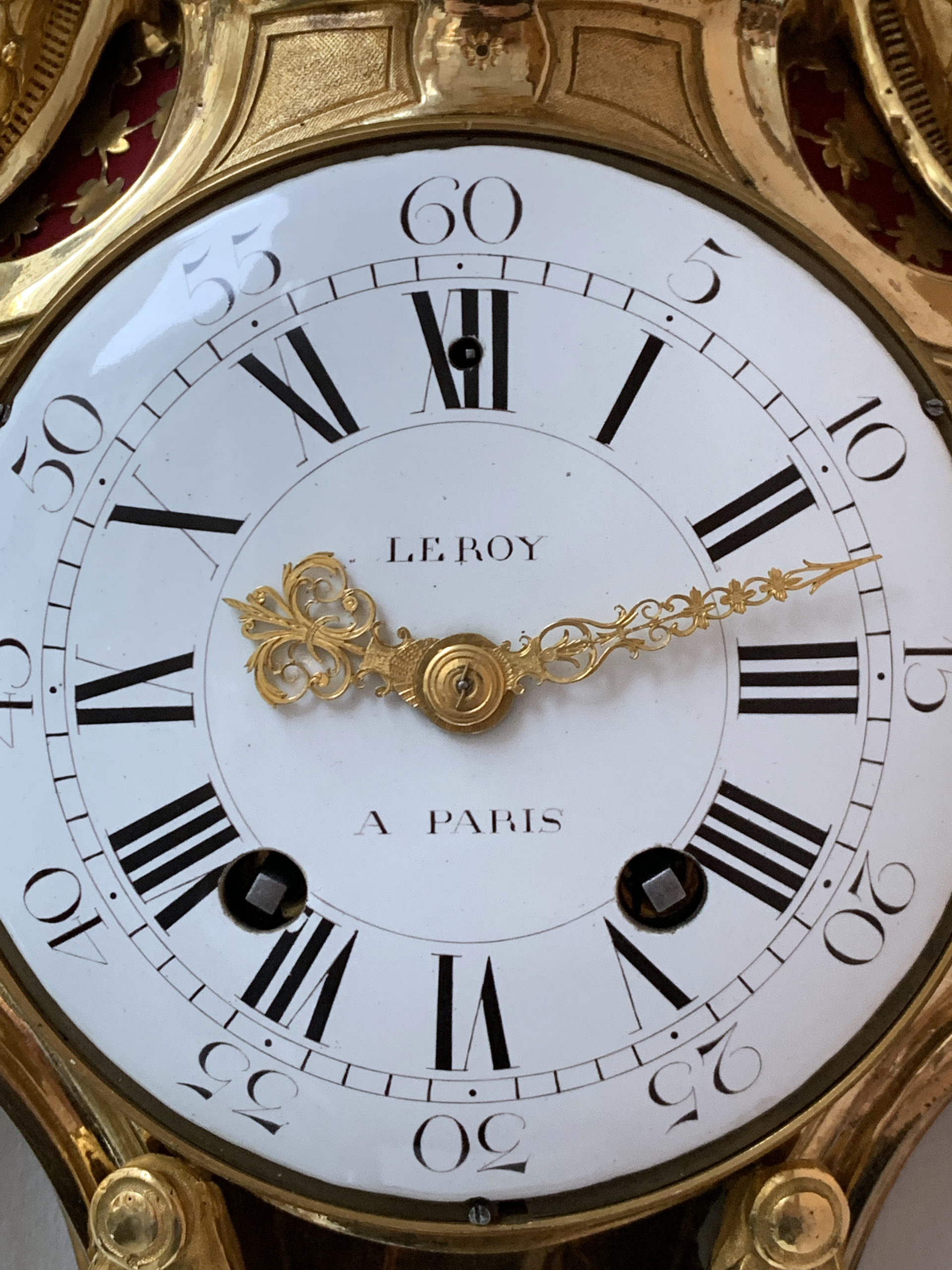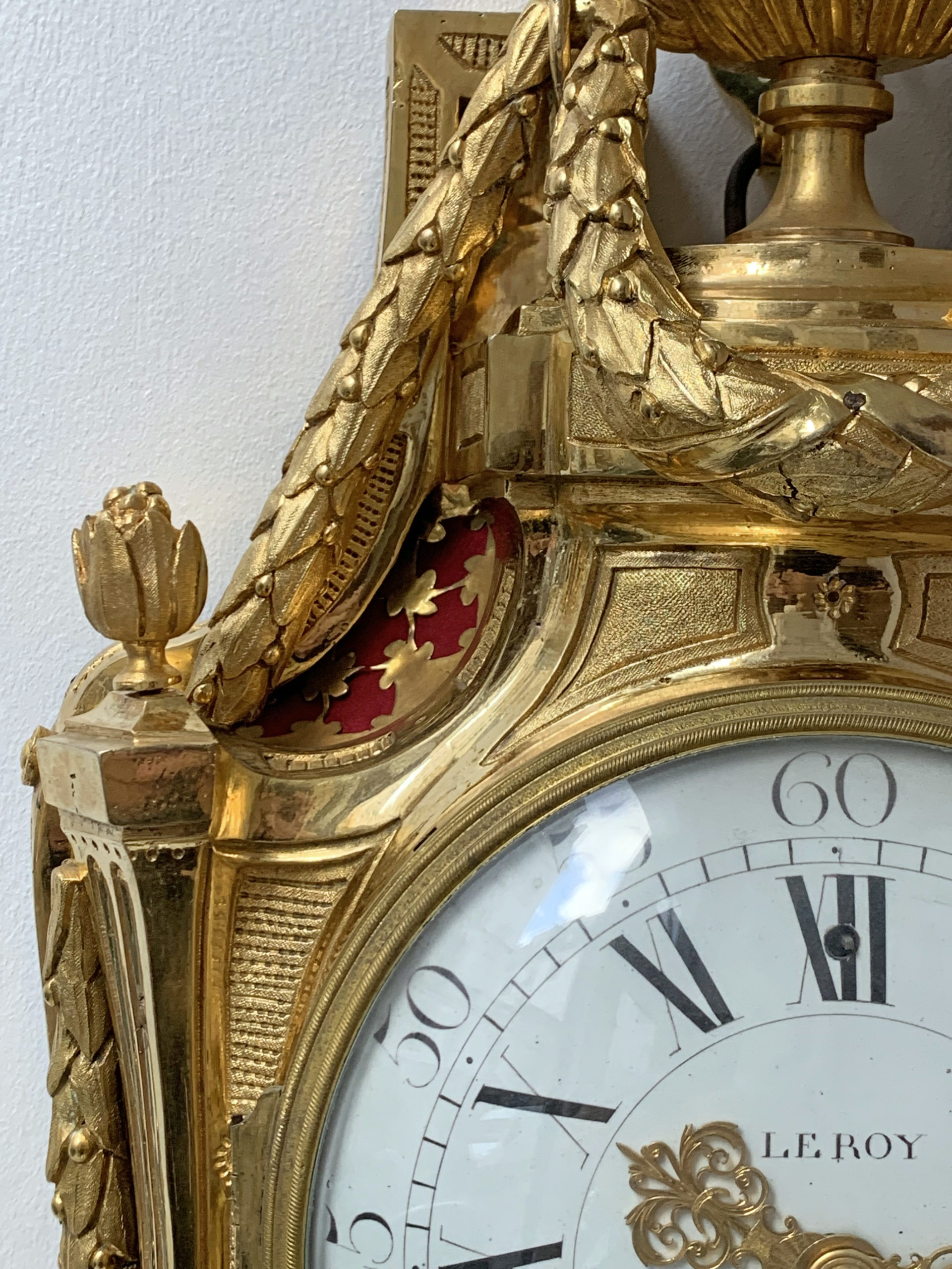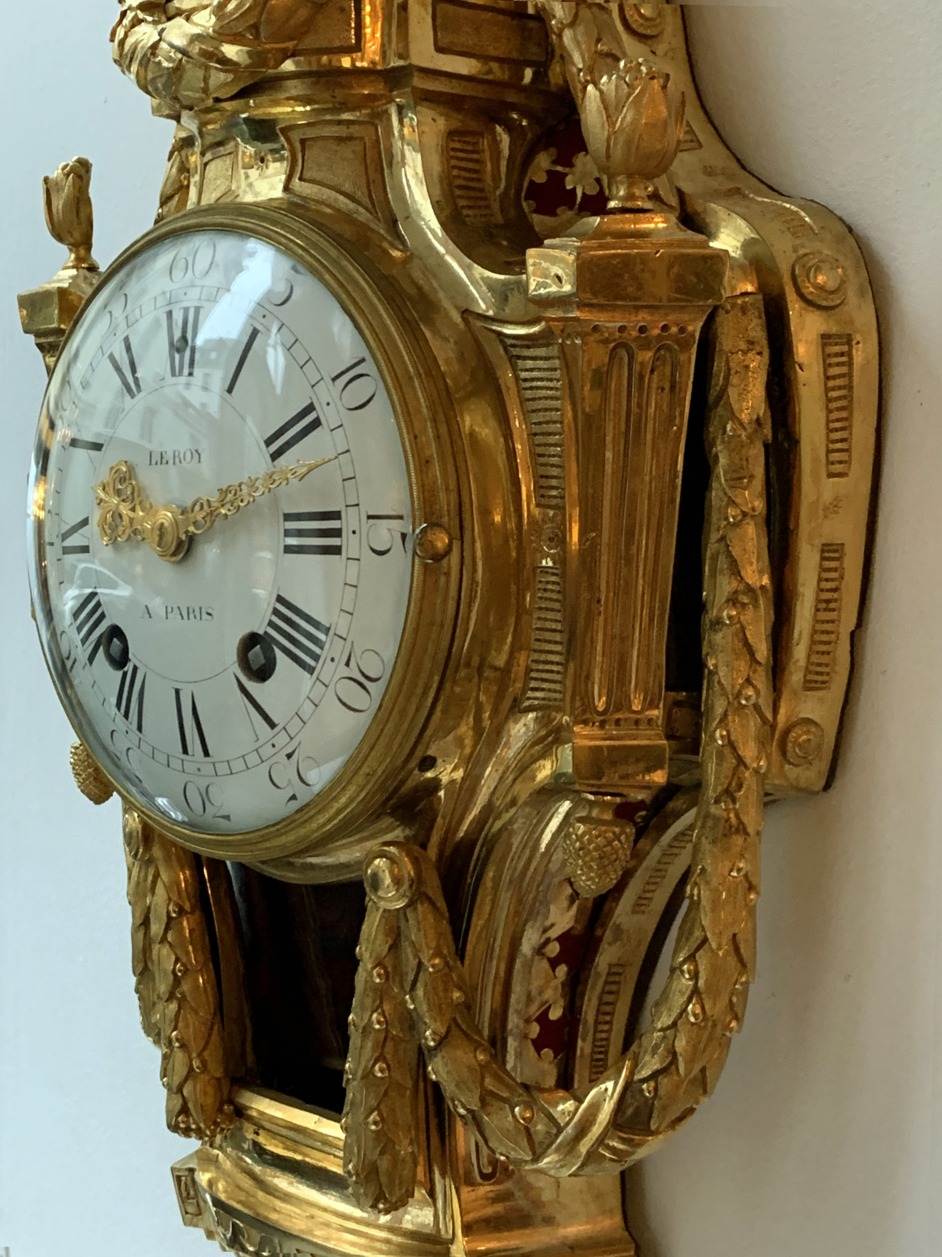 LE ROY – FOULLET. A LATE LOUIS XV CHASED AND GILDED BRONZE WALL CLOCK