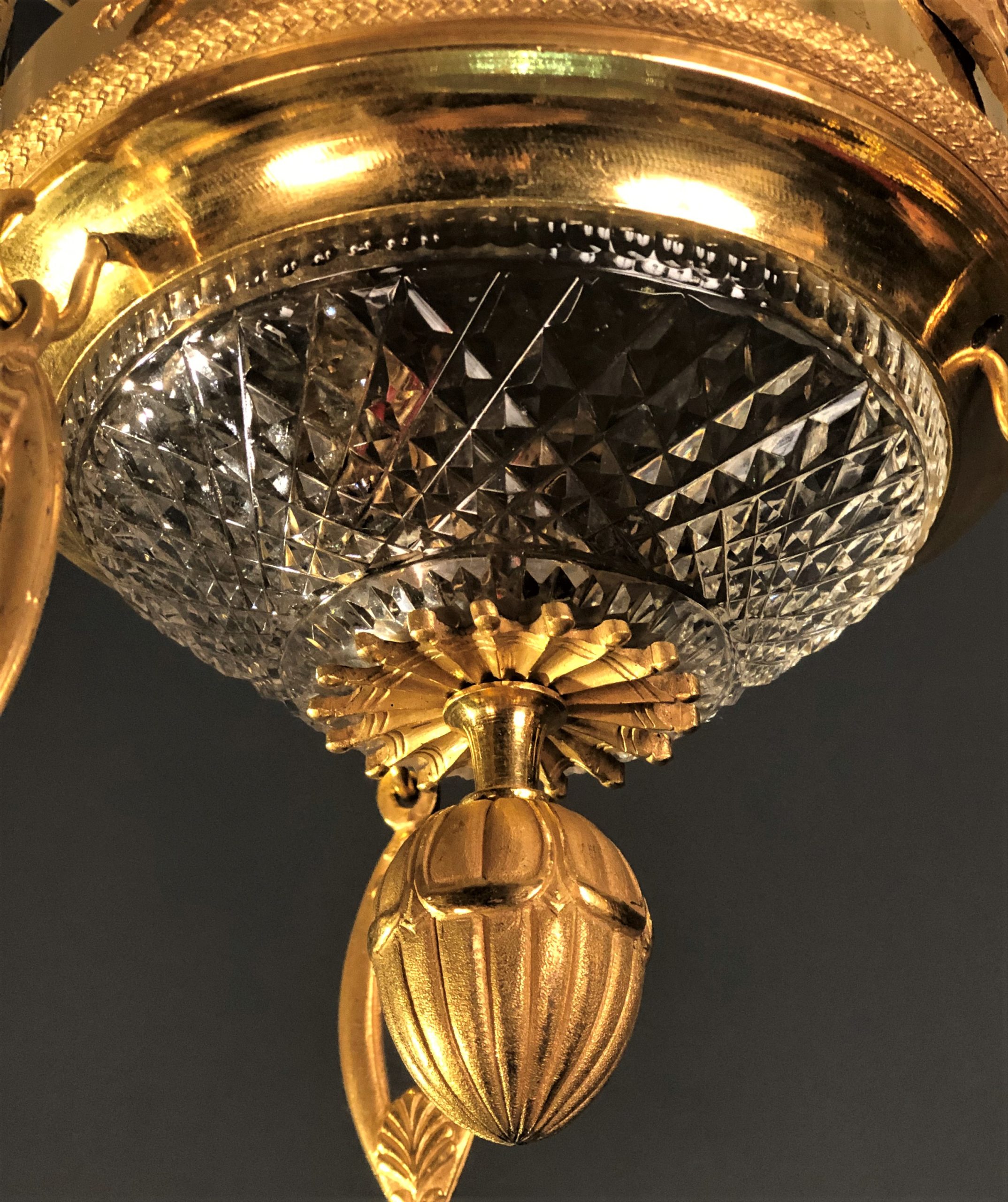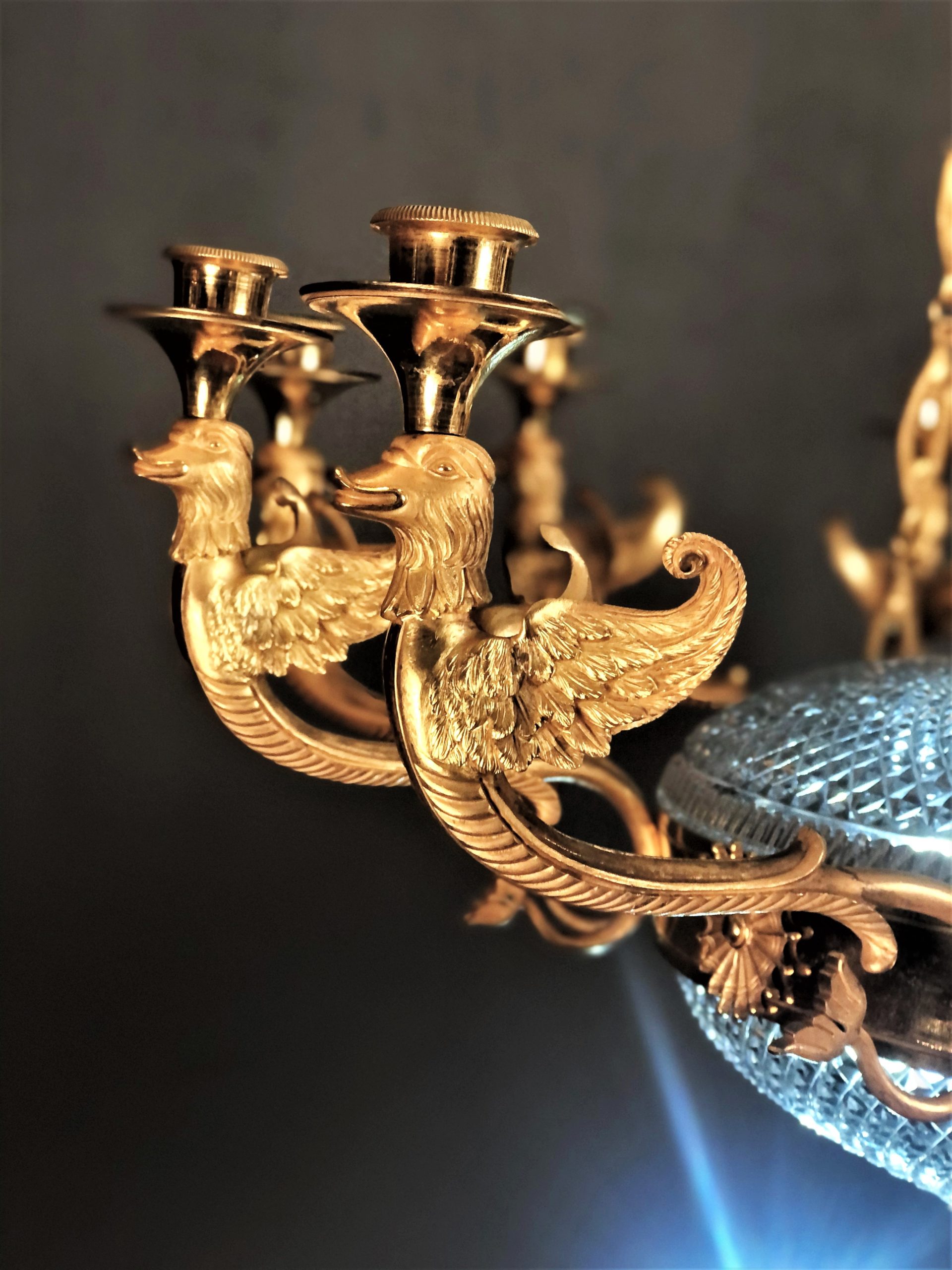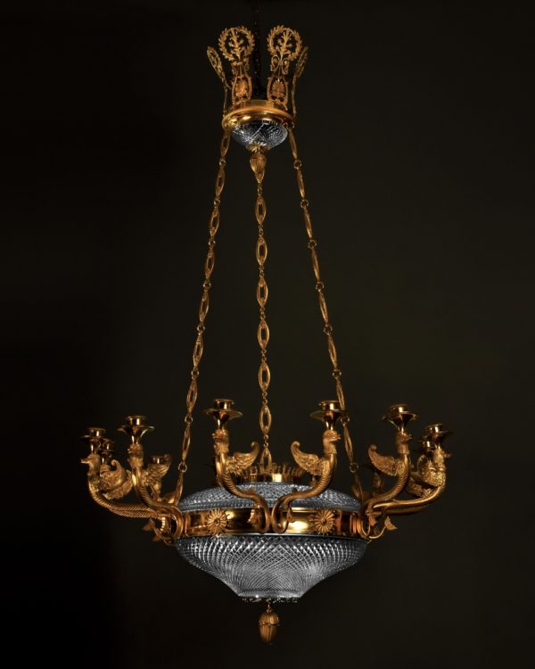 The arms of light are ormed by chimeric figures, the upper part is decorated with an openwork representing palmettes surmounted by vegetables ornaments.