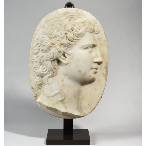 Notre médaillon ovale en marbre blanc est un portrait présumé d’Alexandre le Grand.