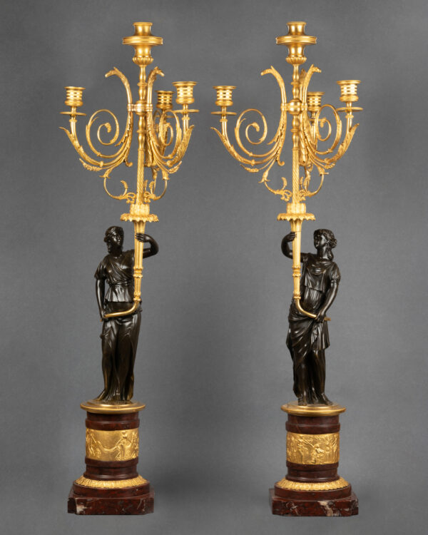 Paire de candélabres en bronze patiné et doré ,