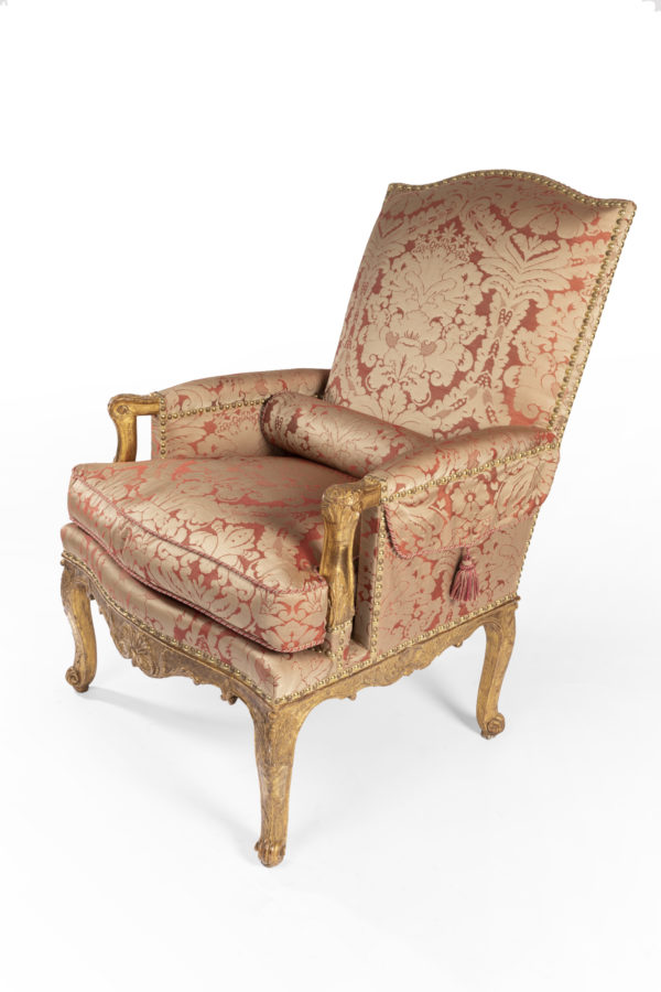 Travail Parisien d’époque Régence . Soierie récente montée à poches sur les côtés .