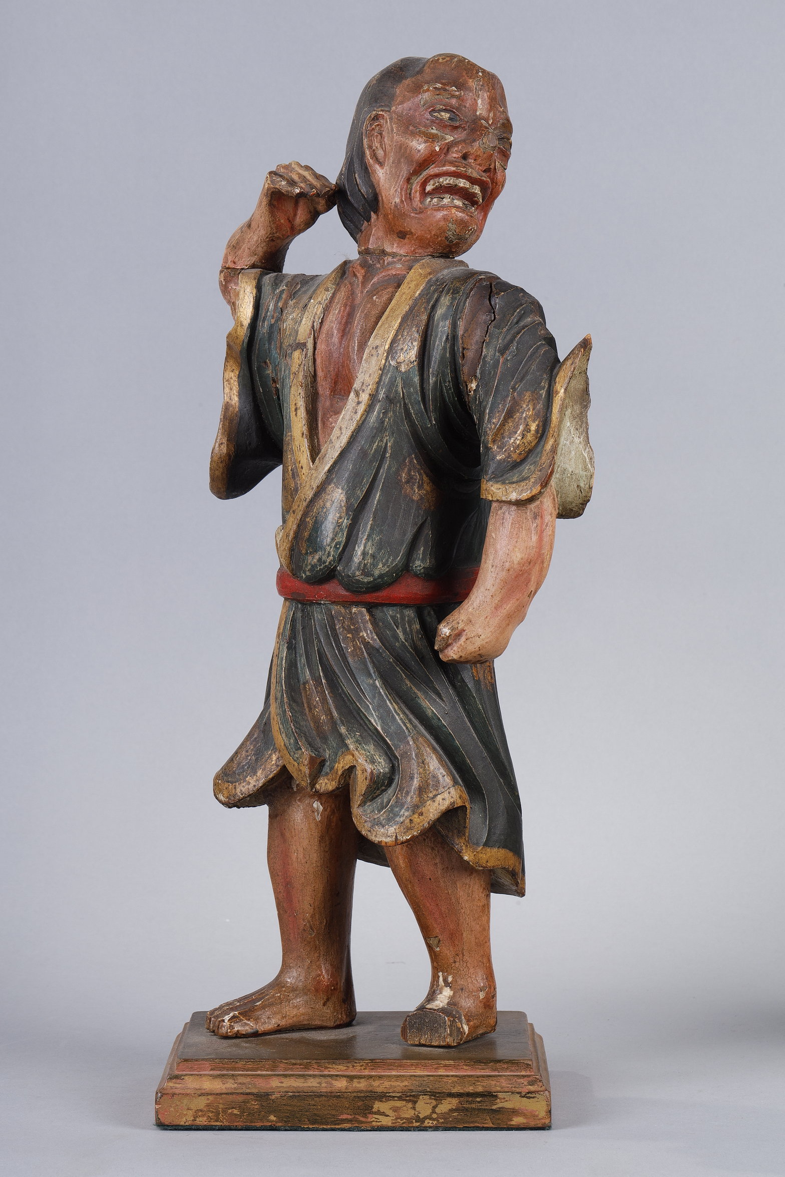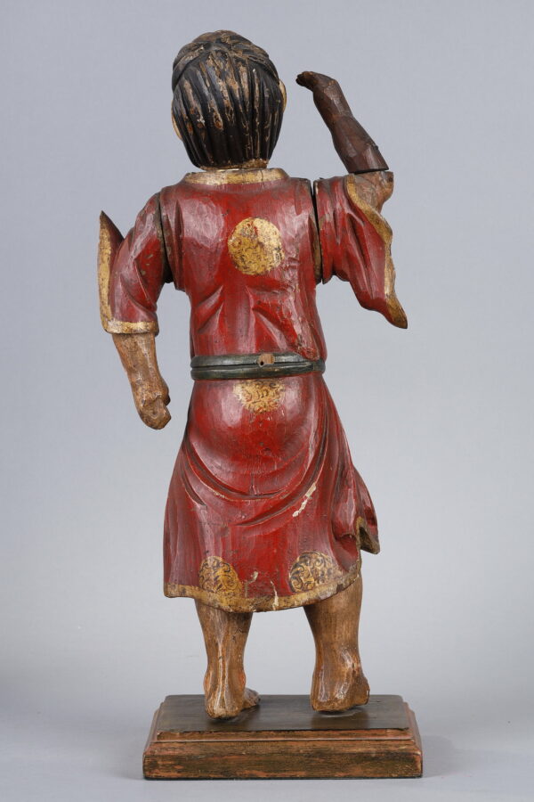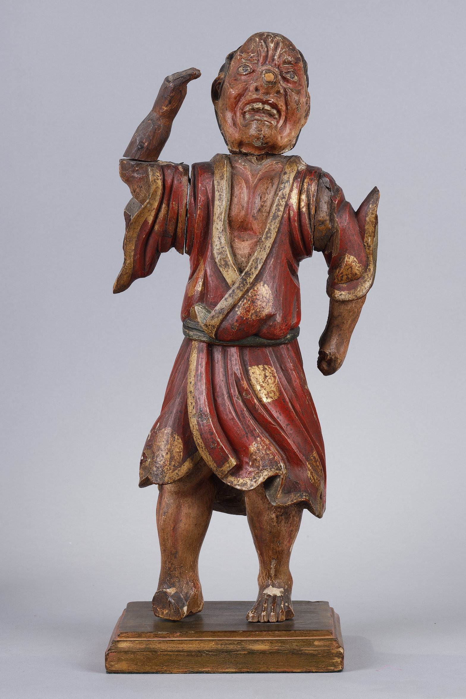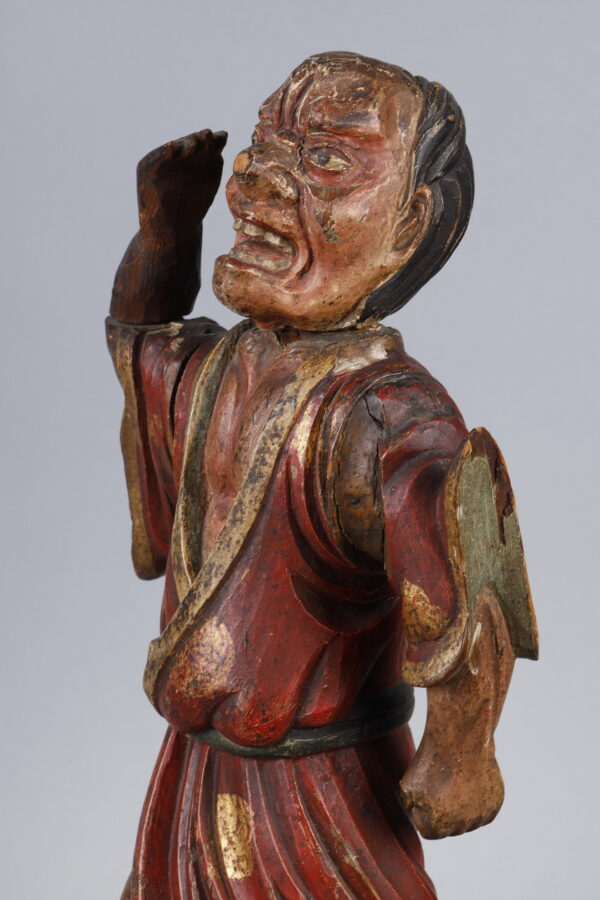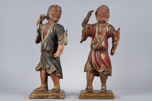 Paire de statues en bois peint de Chine. Ces statues sont des poupées de théâtre.