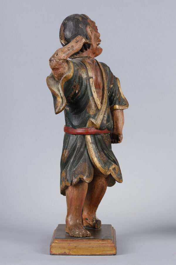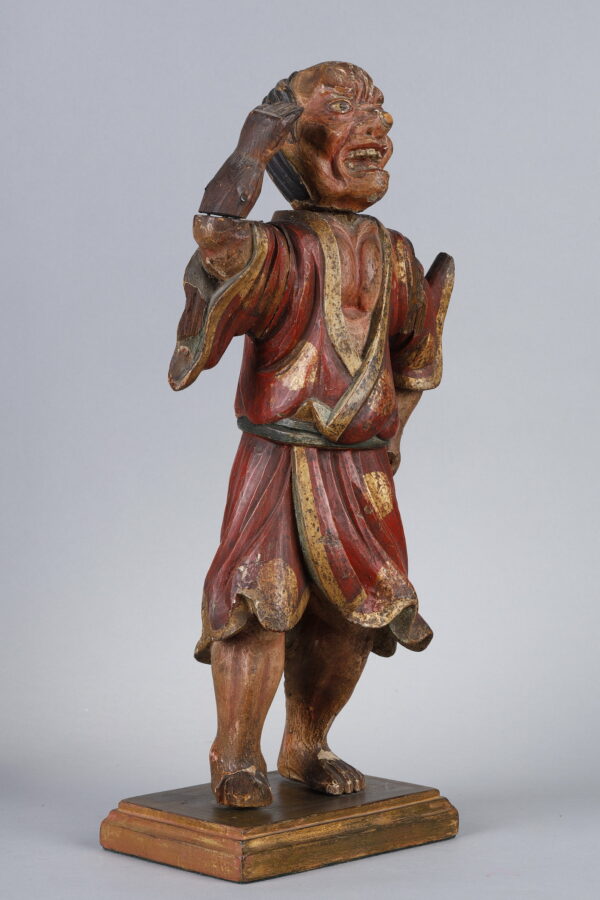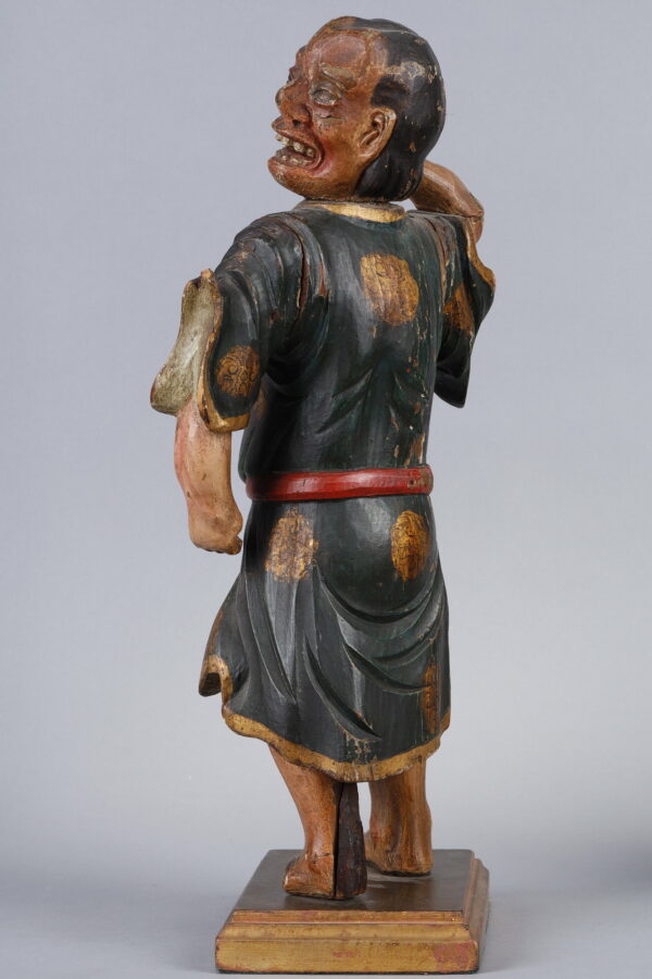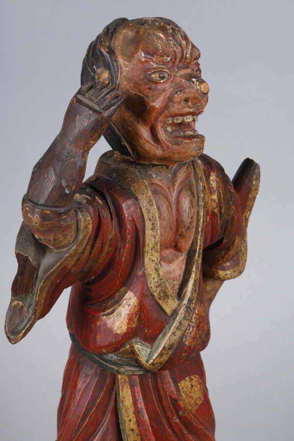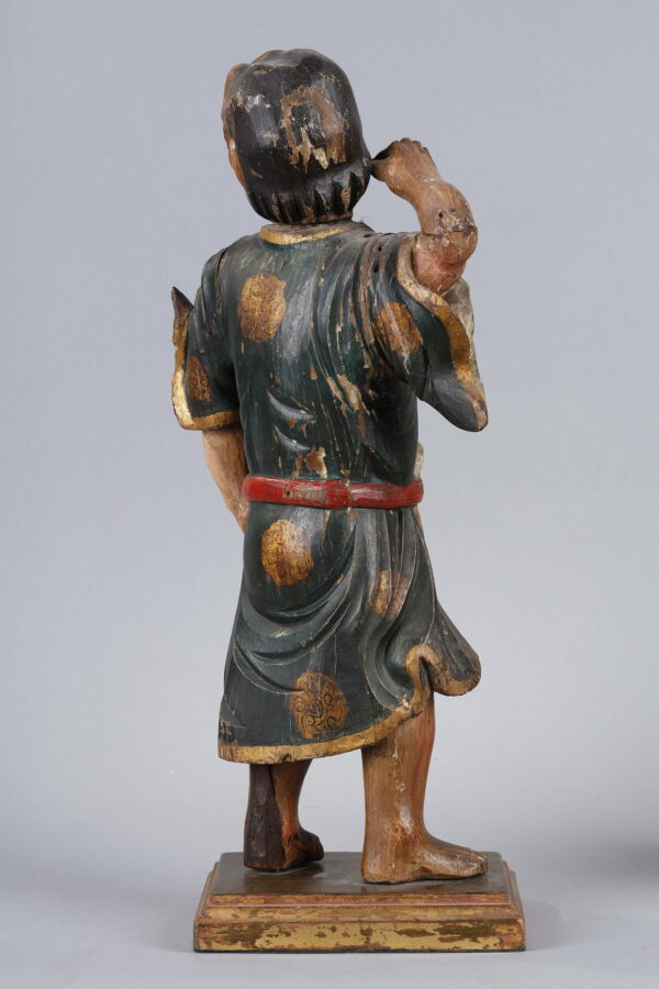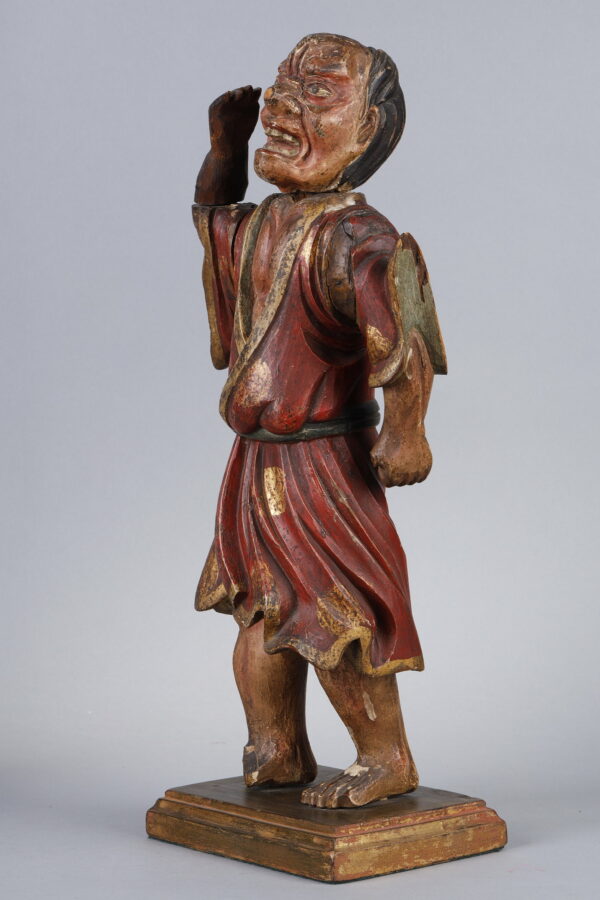 Paire de statues en bois peint de Chine. Ces statues sont des poupées de théâtre.