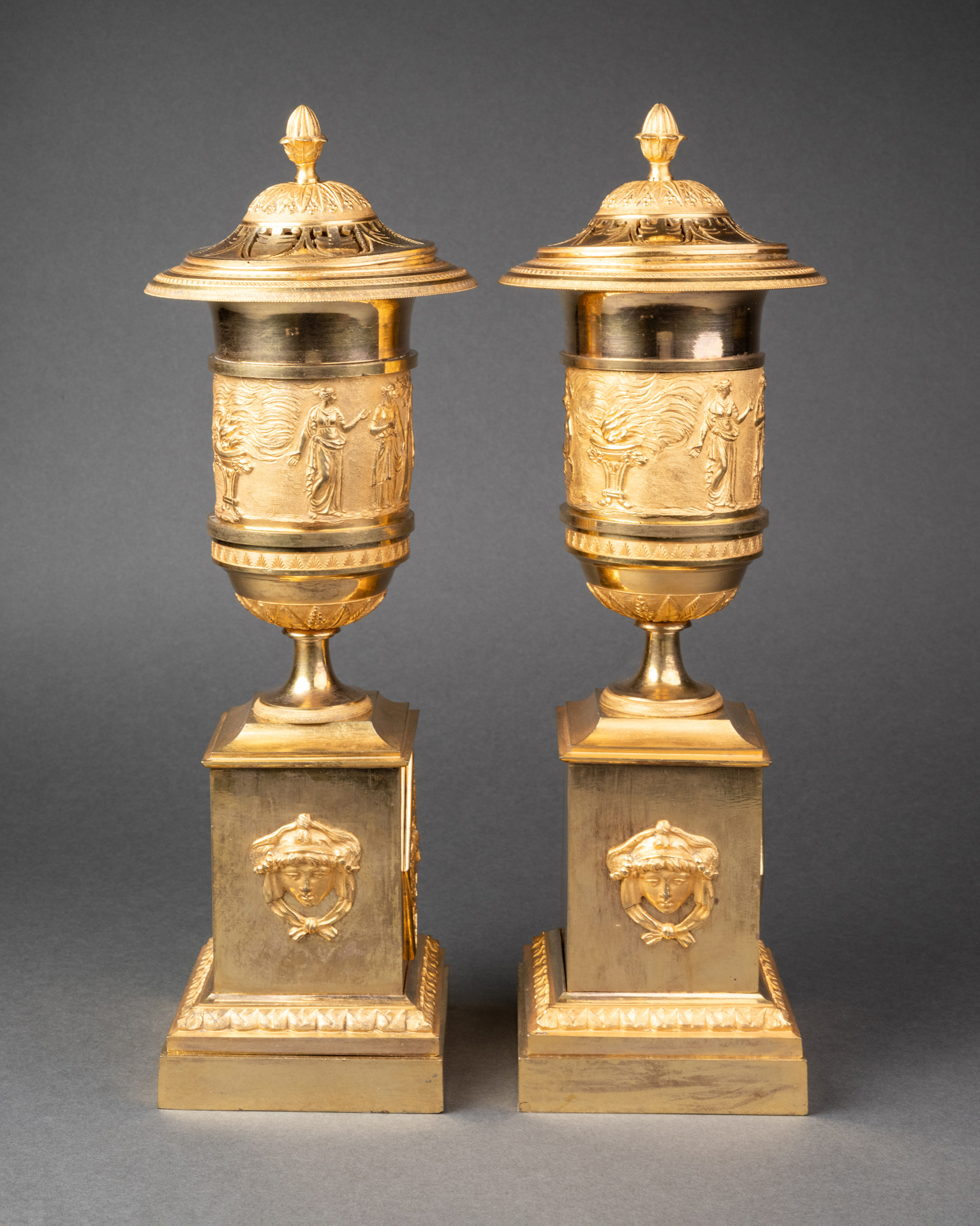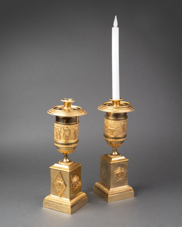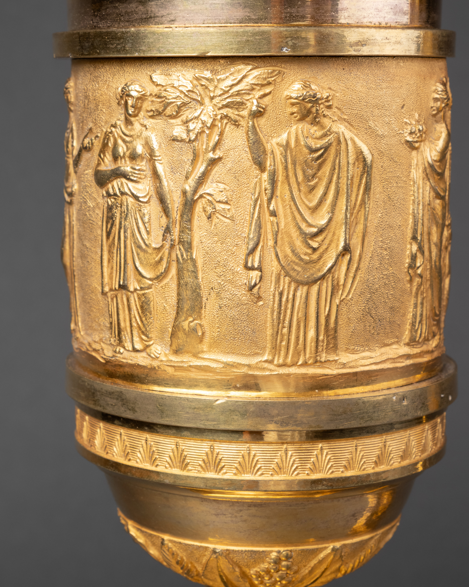 ciselé et doré , le fût en forme de vase sur piédouche , la panse ornée d’une