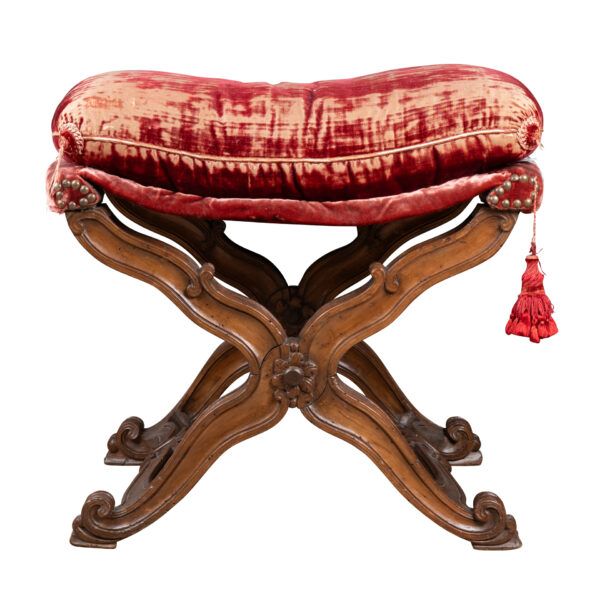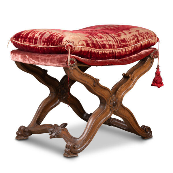 piètement mouvementé en X centré de fleurettes , sur quatre pieds terminés en