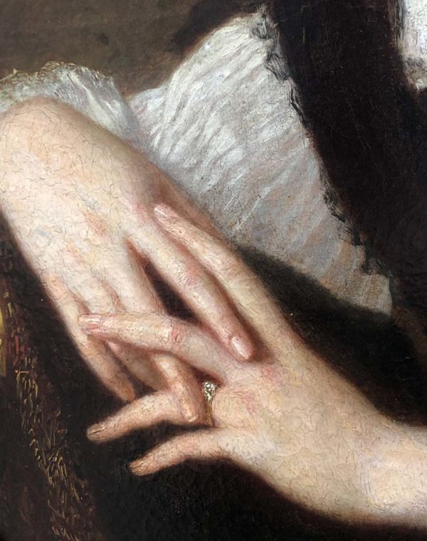 Holtzapffel peint un portrait classique, de très belles factures, héritage des beaux portraits de cours, dans la mouvance de Winterhalter.
