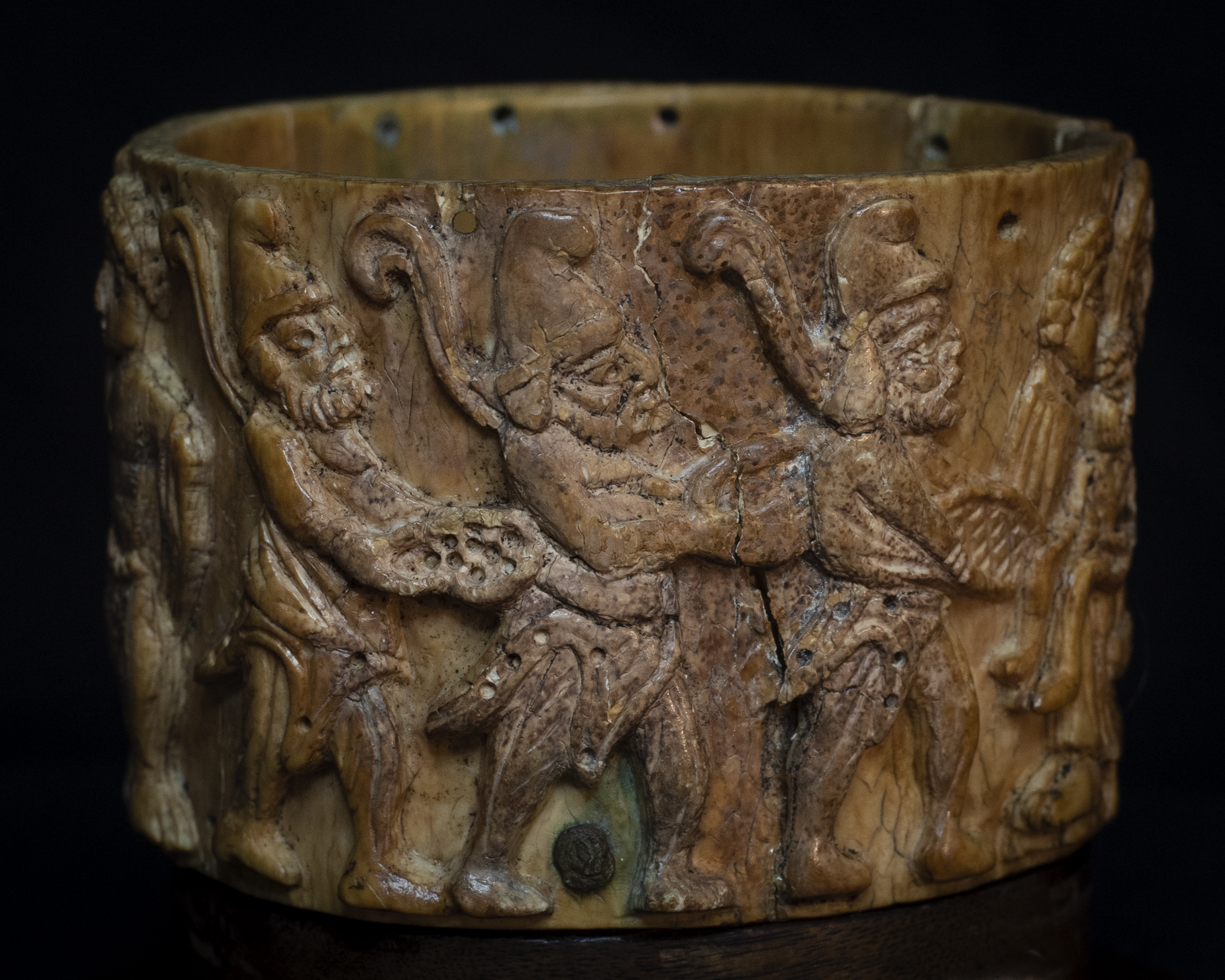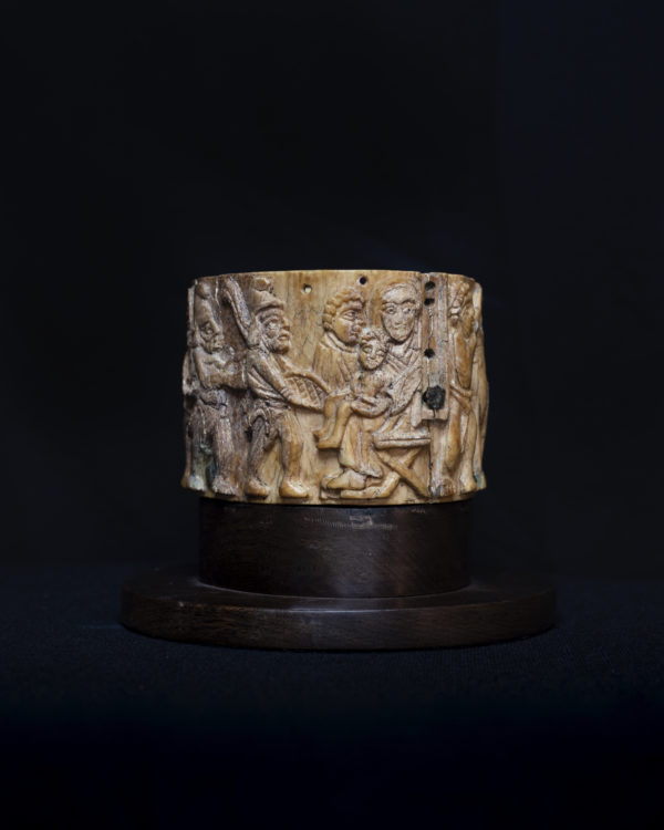 Issue de l’art Byzantin de la première moitié du VIe siècle, cette Pyxide illustre l’habileté des ivoiriers de l’époque Byzantine.