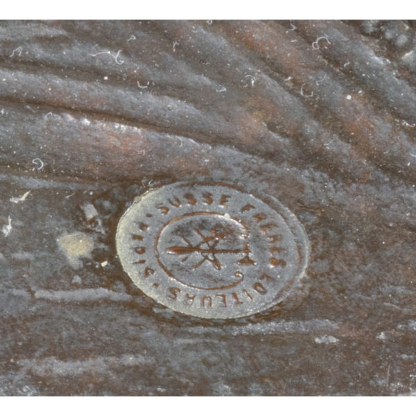 Godchaux lui-même retouchait ses cires qui étaient ensuite fondues selon la technique de la cire perdue comme c’est le cas ici pour notre modèle qui a été tiré avec une terrasse fine, marque d’une fonte ancienne.
