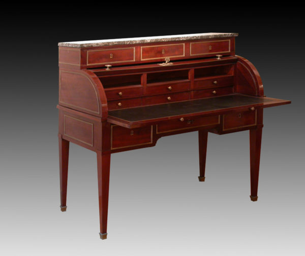 Le bureau à cylindre est à l’époque plutôt destiné aux hommes, et surtout le premier d’entre eux, le roi. Le meuble cylindre se popularise par la suite dans les intérieurs bourgeois.