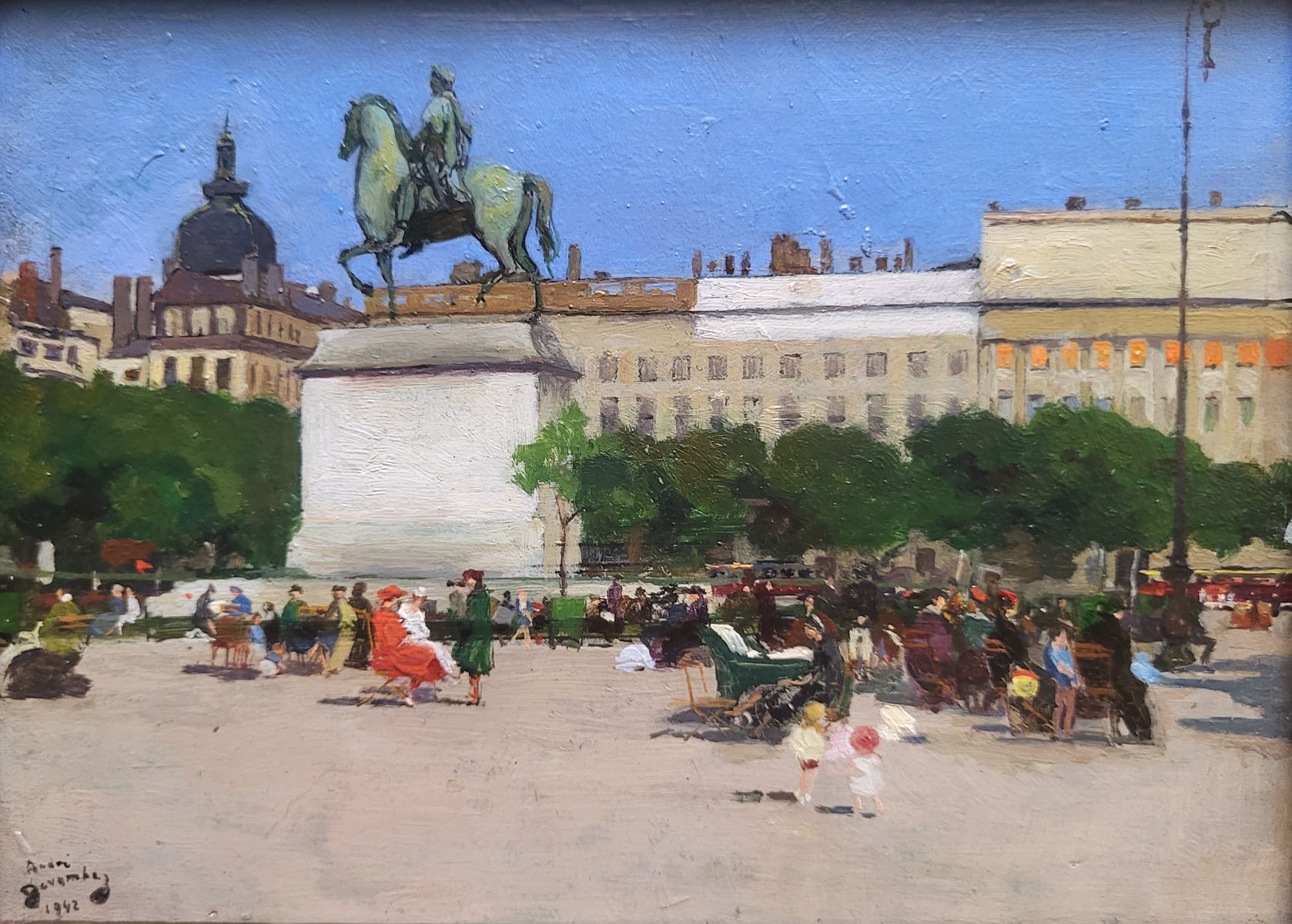 Notre oeuvre représente la place bellecour à Lyon. Elle est datée 1900