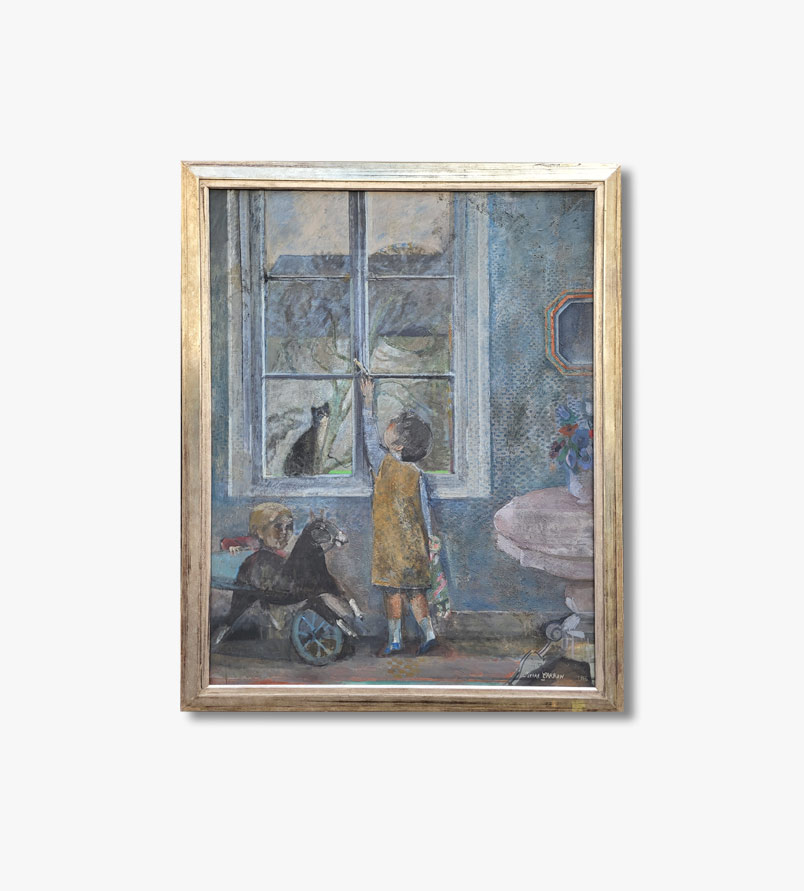 huile-sur-toile-la-petite-fille-et-le-chat-par-pierre-carron