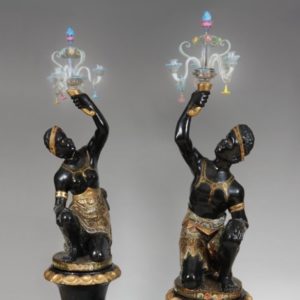 Paire De Nubiens Vénitiens Et Candélabres En Verre De Murano